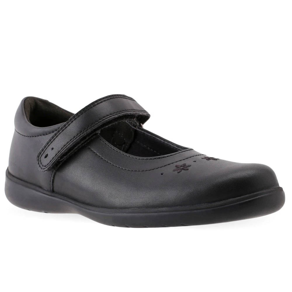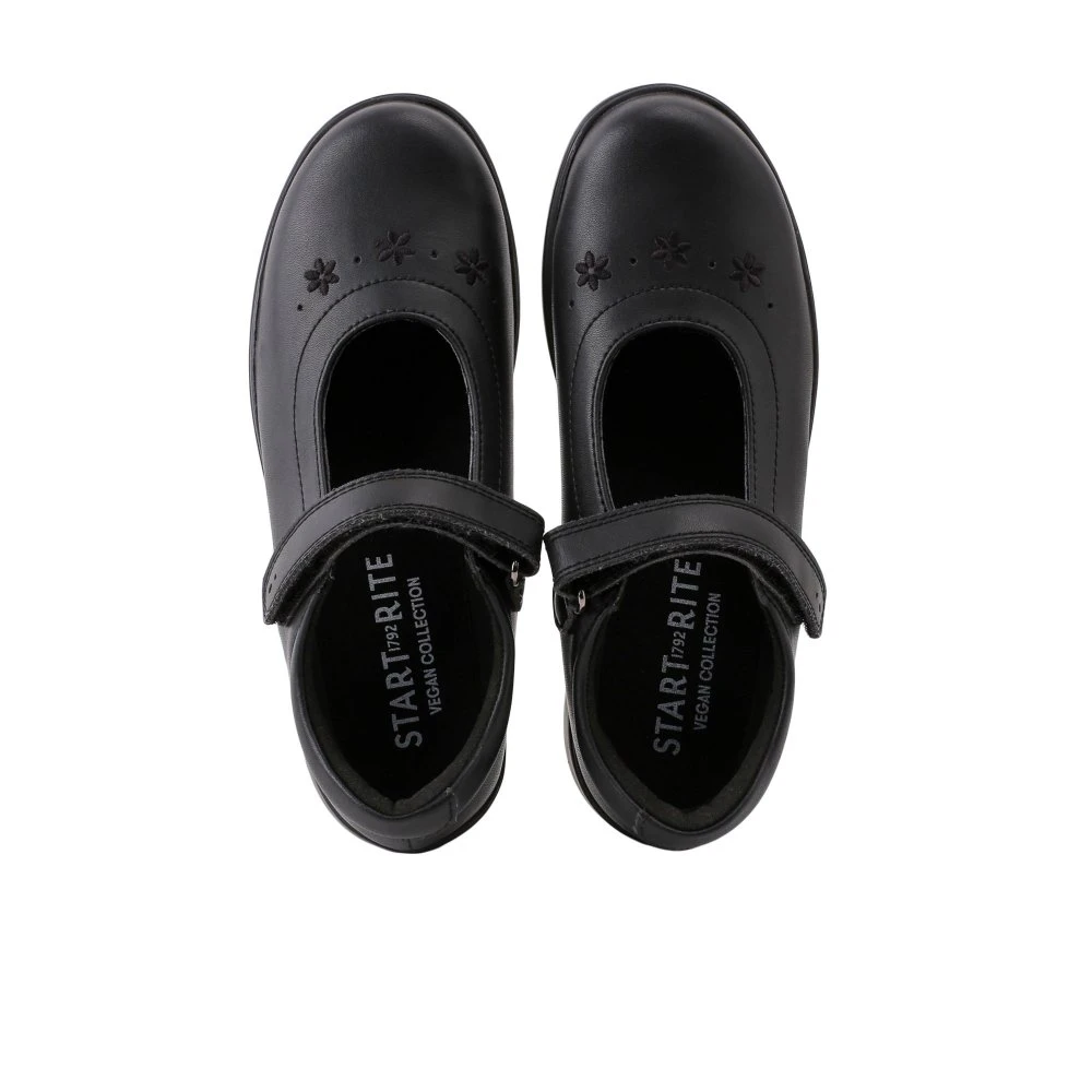 The Bliss Vegan girl’s school shoes from Start-Rite offer a water-friendly vegan upper finished with pretty floral stitching and small cut-outs. Slip feet into breathable linings and secure with a rip tape strap over the top of the foot with a hook and loop.Â