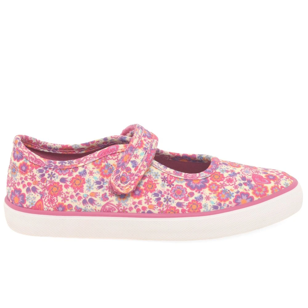 Discover the adorable Start-Rite Busy Lizzie Girls Infant Canvas Shoes with durable and supportive canvas uppers that are beautifully decorated to add a vibrant finish to their little outfits.