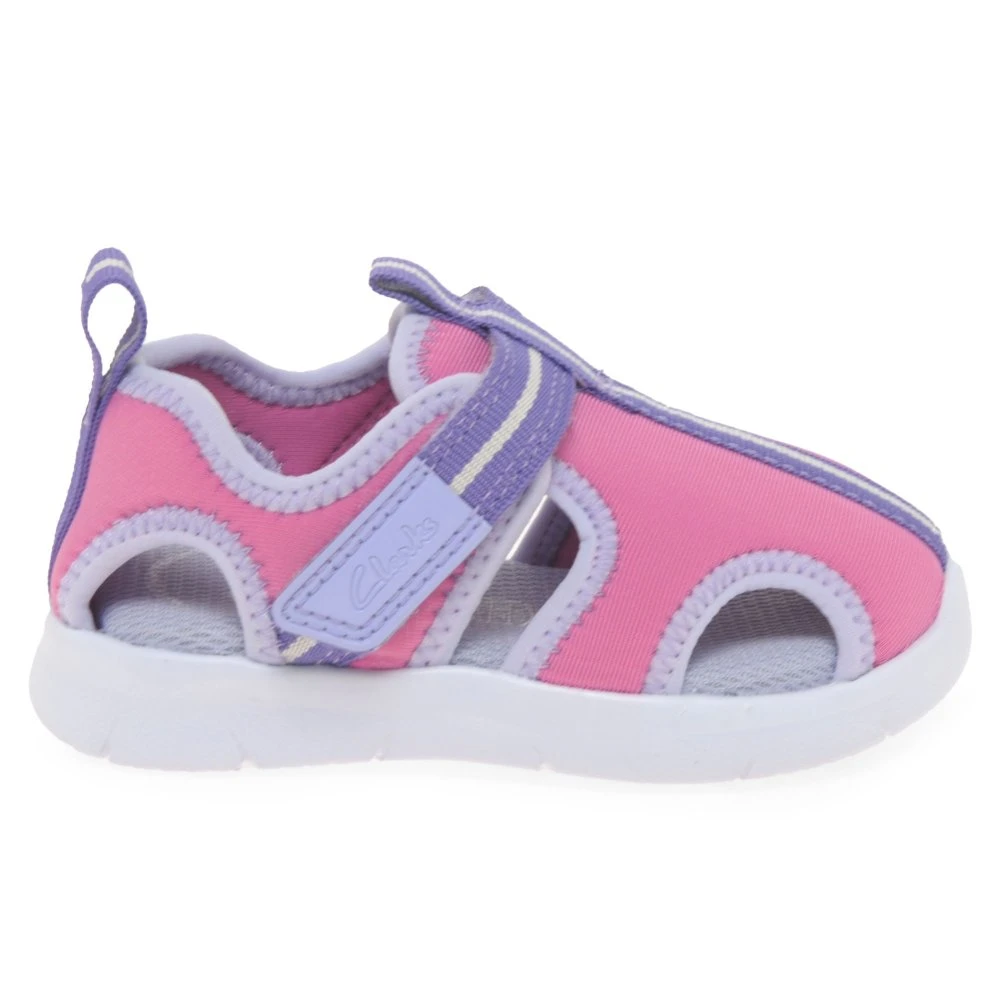 Beach days just got easier with the Clarks Ath Water K Girls Infant Sandals. They showcase water-friendly uppers, and adjustable riptape fastening and a soft textile construction to keep little ones playing for longer!