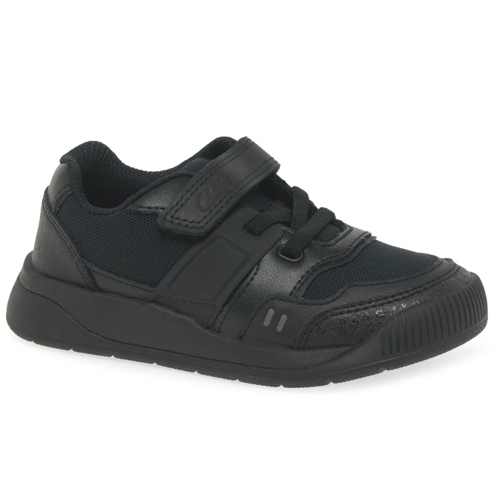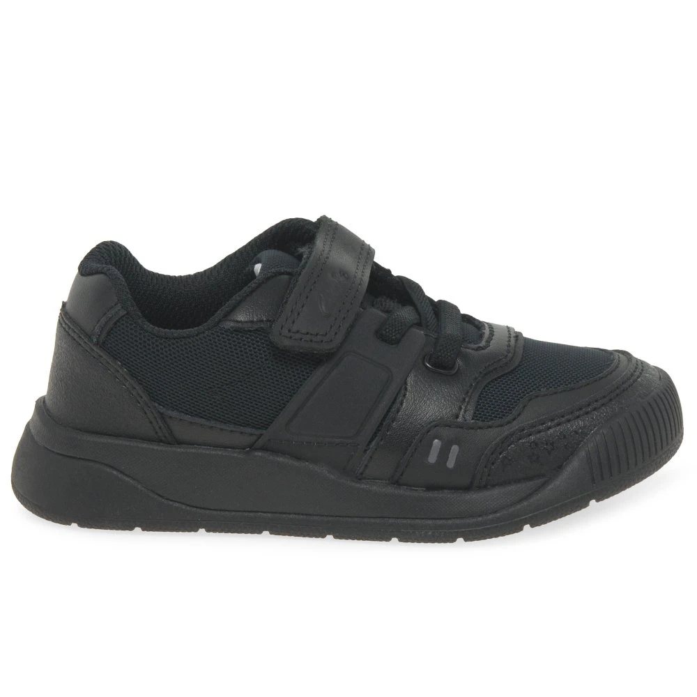 A sporty style for the playground, the Clarks Lune Flex K boys school shoes feature soft leather uppers with breathable mesh panels and robust rubber soles. Dual fastenings of rip-tape and bungee laces allow for a secure and personalised fitting.