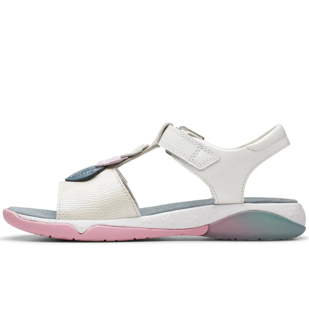 Prepped for wear after wear with their breathable leather uppers and spongy foam footbed, the Clarks Osian Charm K girls infant sandals keep precious little feet feeling stylish and comfortable. Designed with adjustable rip tape straps, this style prioritises an easy and secure on/off fit, while their printed soles and imaginative 3D decorations bring the magic to every step.