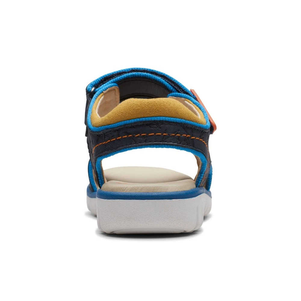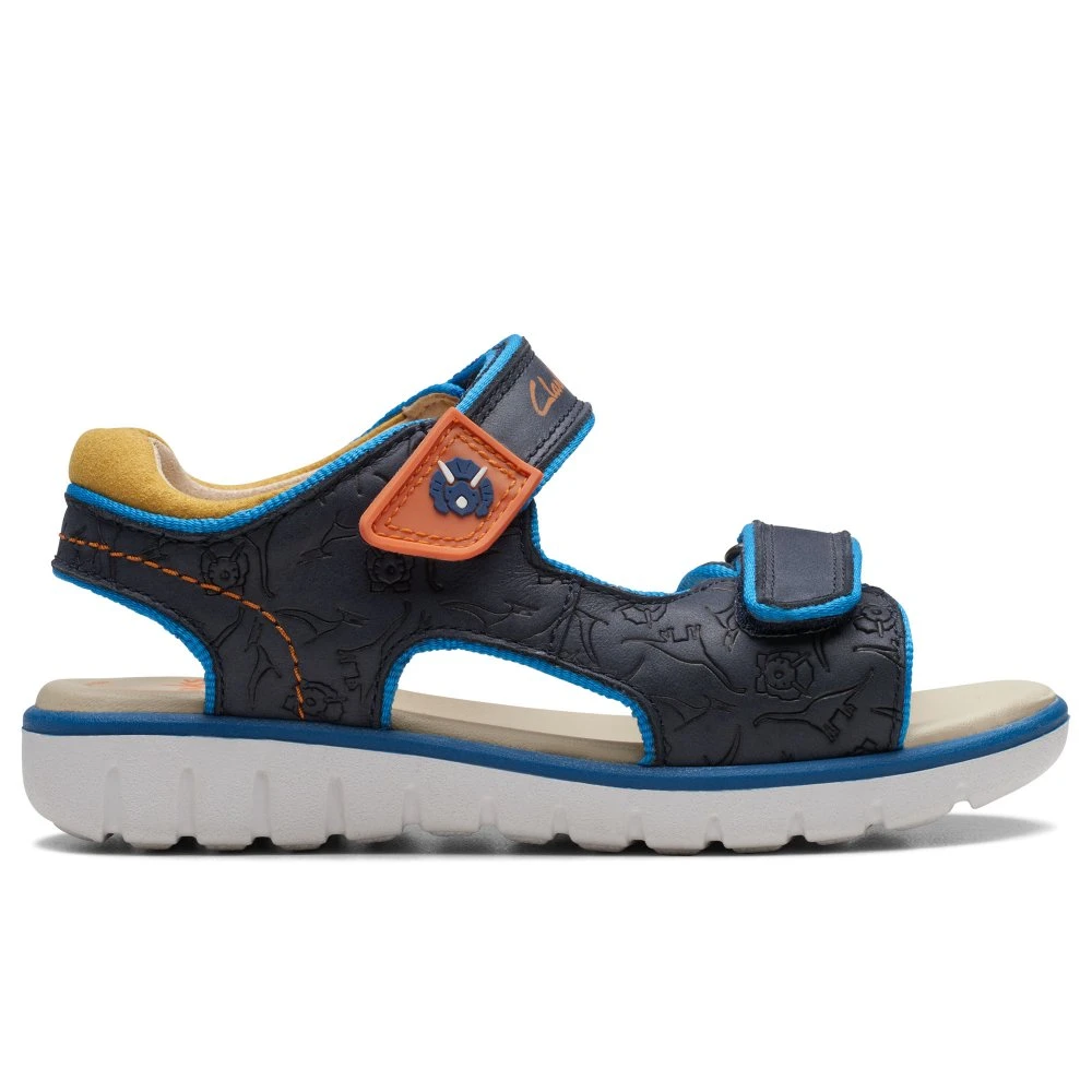 The Clarks Roam Plane K Boys Infant Sandals are the perfect warm-weather companion with a breathable open toe design and soft leather uppers embellished with an adorable dinosaur print and a double riptape fastening to keep little feet secured on their adventures.