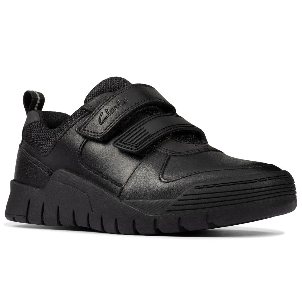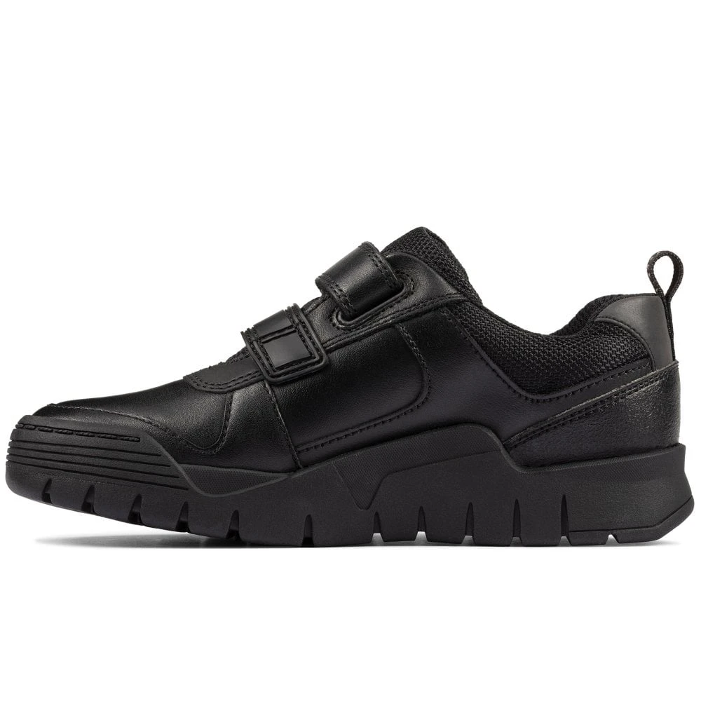 Featuring a stylish but practical chunky sole, the Clarks Scooter Speed T boy’s infant school shoes are great for Monday-Friday use. Smooth leather uppers are easy to care for, while a padded collar and toe bumper add extra comfort to the already hard-wearing and durable design. Agion-infused linings keep feet feeling fresh, while a double rip tape fastening offers an easy on and off.