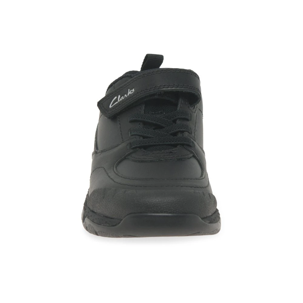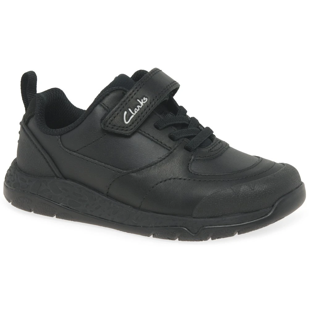 With soft leather uppers and rubber soles, the Clarks Steggy Stride boys school shoes are a durable pair for the playground. 3D dinosaur spine details and dinosaur character detailing adds fun to their uniform.