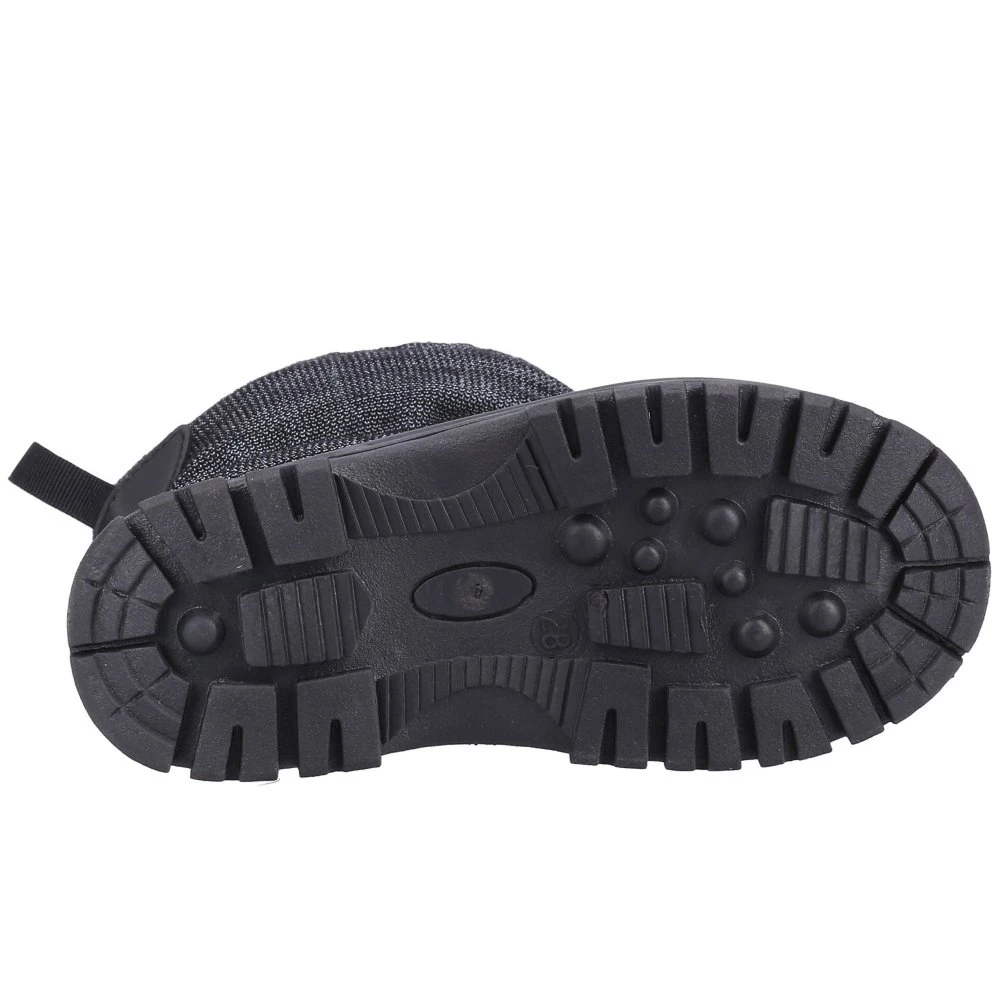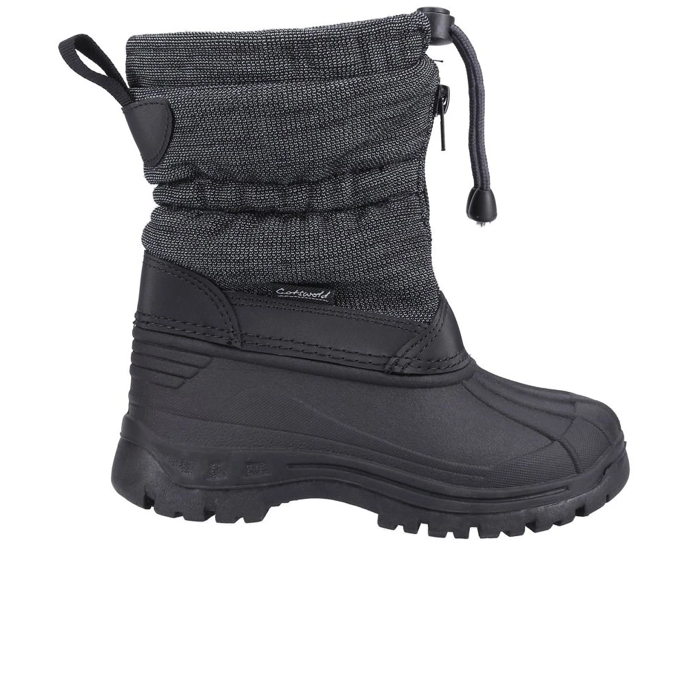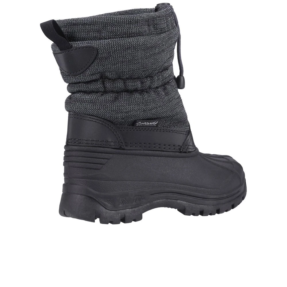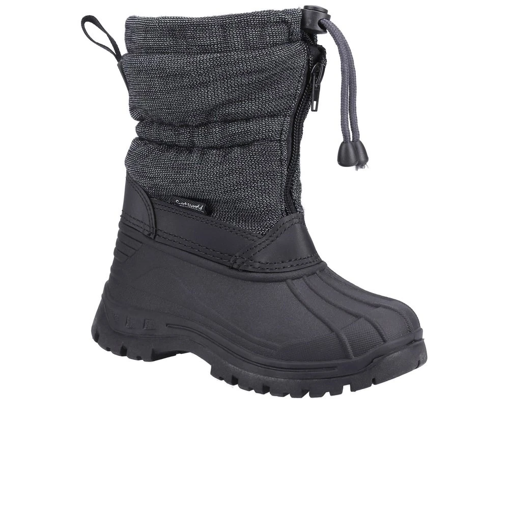 Windproof and weatherproof childrens snow boots with drawstring top and robust chunky rubber galosh non-slip sole. The lightweight and breathable textile upper is padded and fully lined with microfibre fleece keeping feet warm in cold conditions.