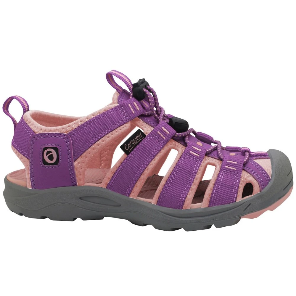 Childrens summer walking leisure sandal from Cotswold, Marshfield Kids is crafted with lightweight recycled uppers, it has a pull toggle fastening for a secure fit and sporty Rugged 360 traction sole for superior grip