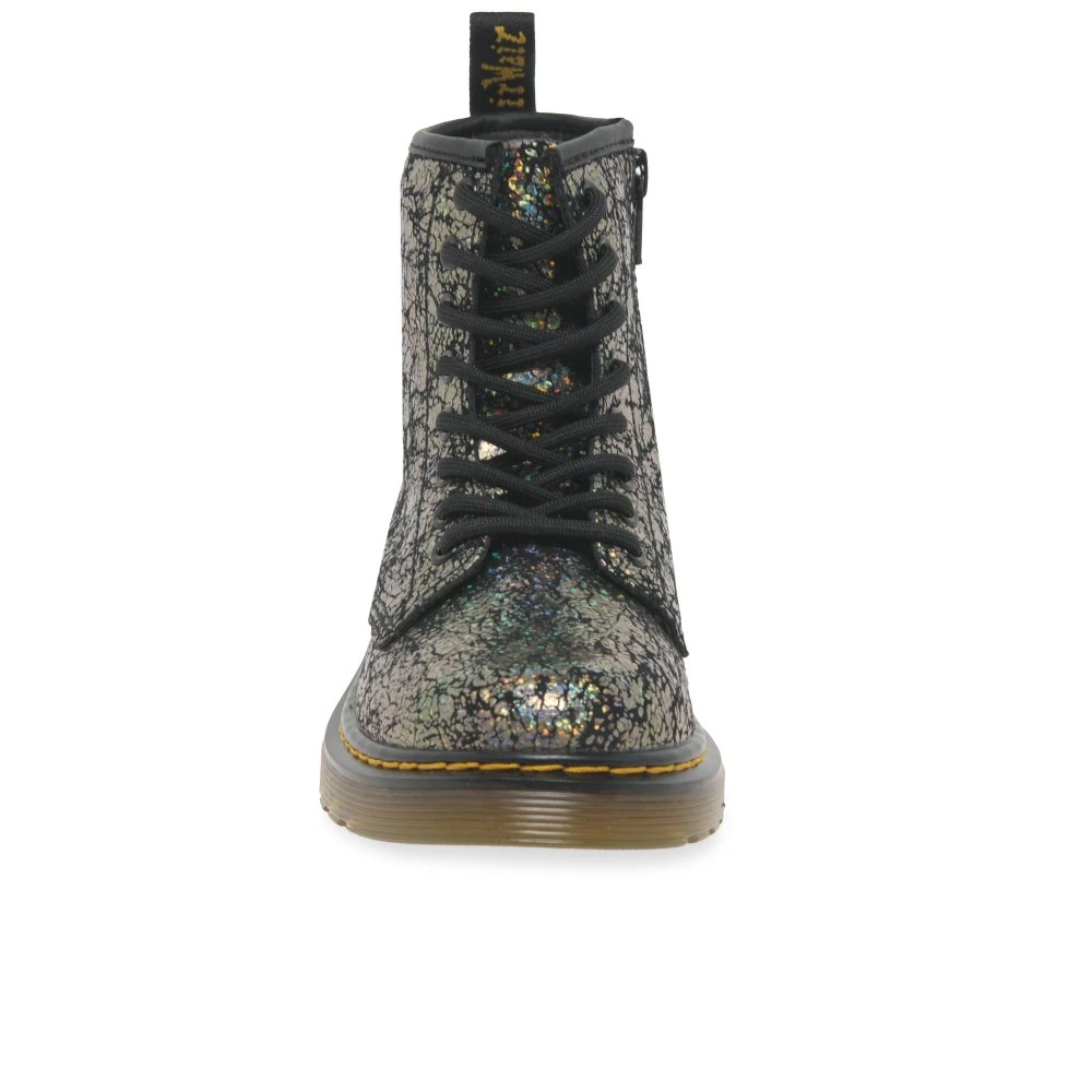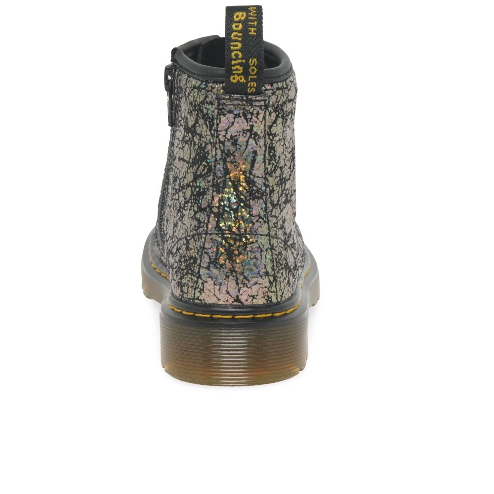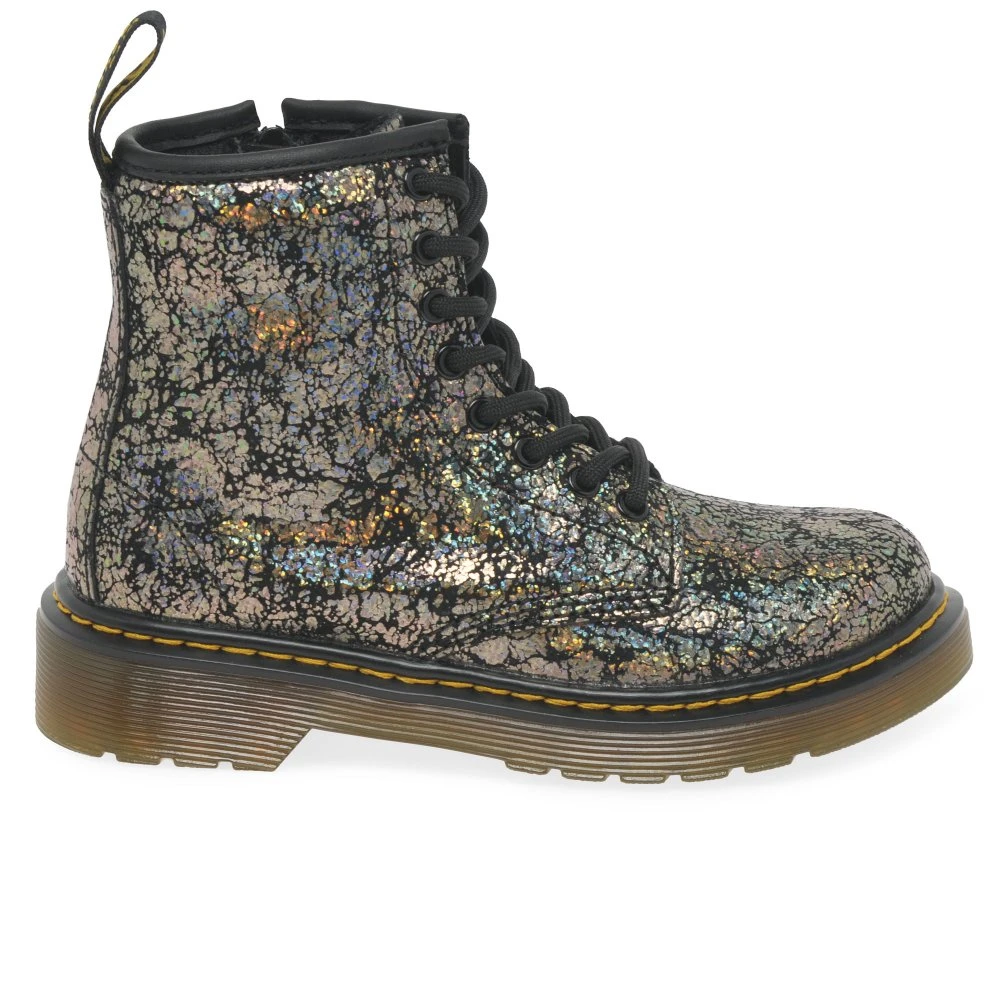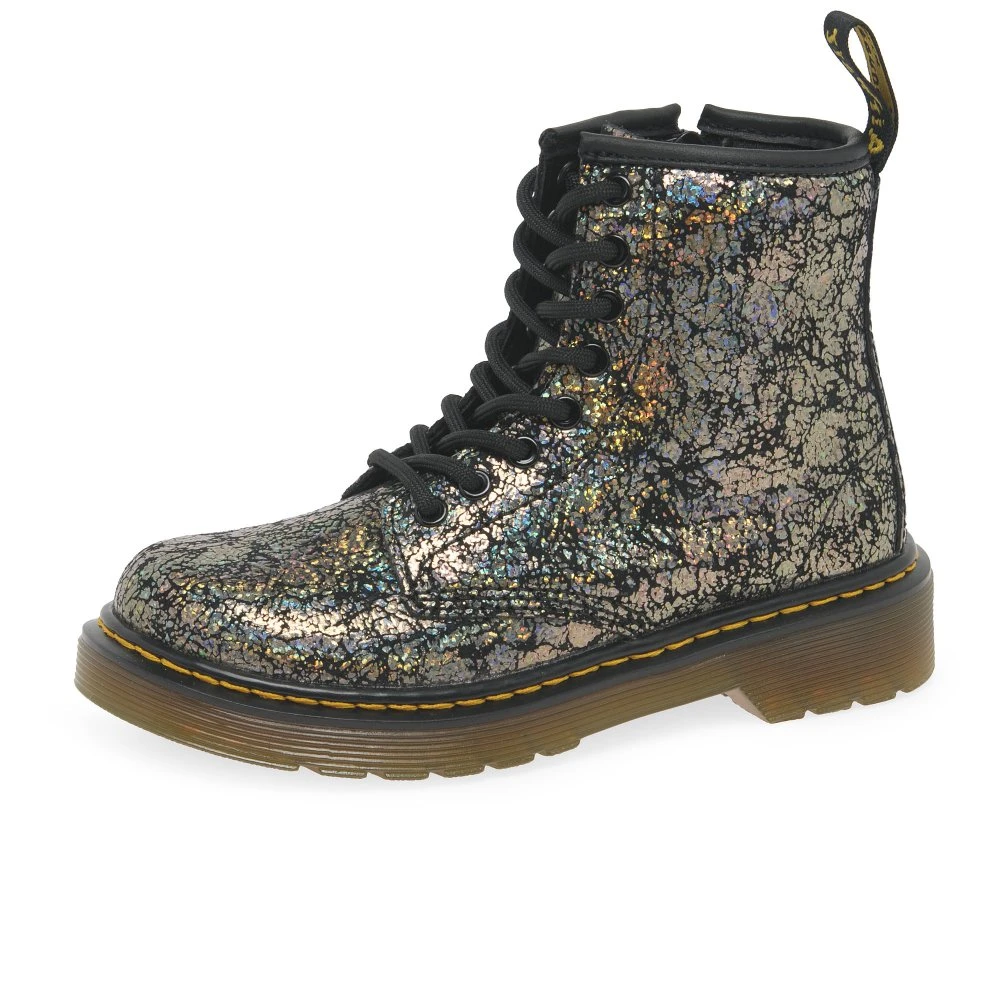 Dr Martens 1460 junior girl’s boots combine durable leather uppers with shock-absorbing soles for all-day comfort. These durable boots boast an attractive design, taking a modern spin on the classic style with iridescent uppers, while keeping feet protected all day long.
