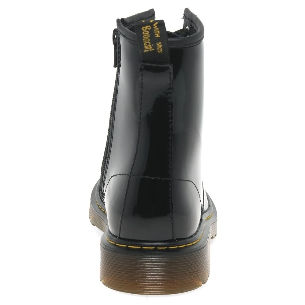 In polished patent leathers, the Delaney boots boast the Doc’s classic DNA – yellow stitching and side grooves – making them the coolest kid on the playground. A smaller replica of the classic adult’s 8-eye silhouette, this pair features more flexible cemented soles to provide comfort for growing feet, and inside zips to make pulling them on and off a cinch.