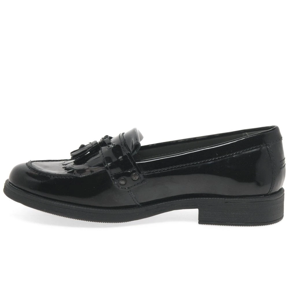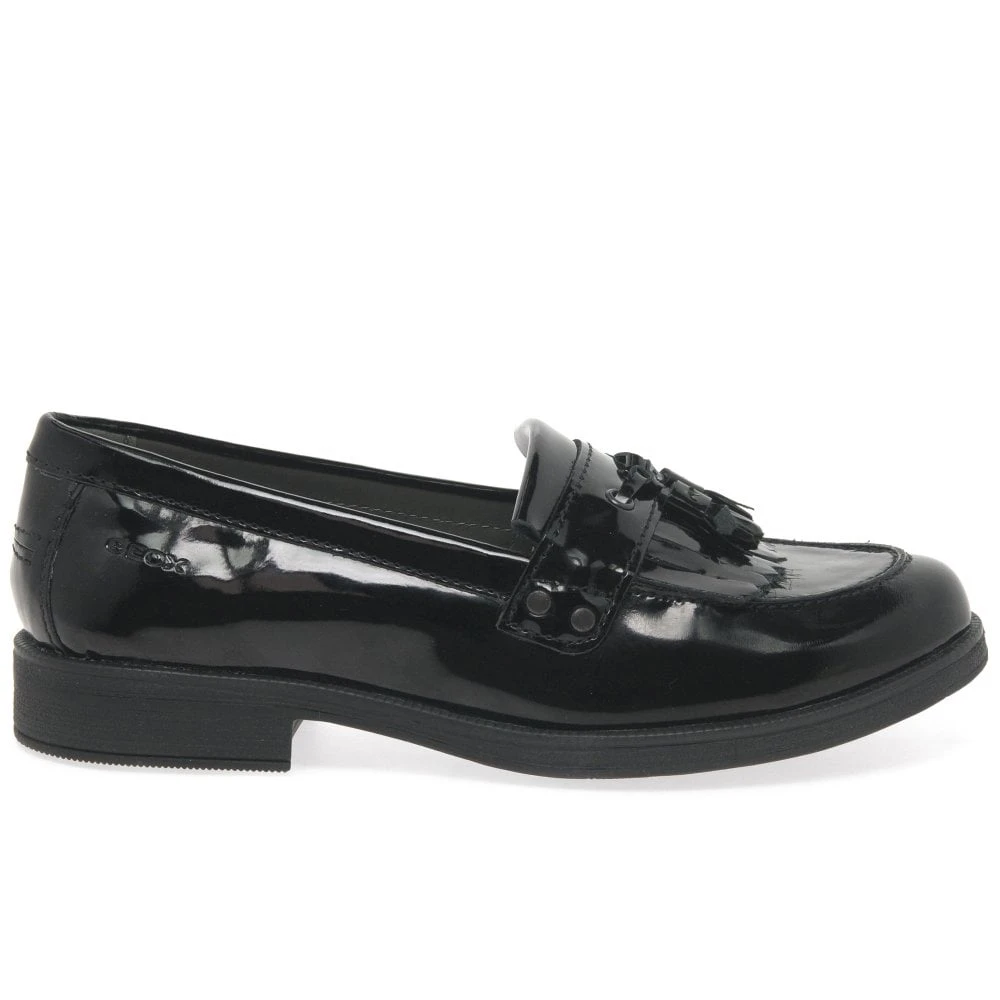 The Geox Agata Tassel girls black leather loafers are a classic design brought up-to-date for the new season.