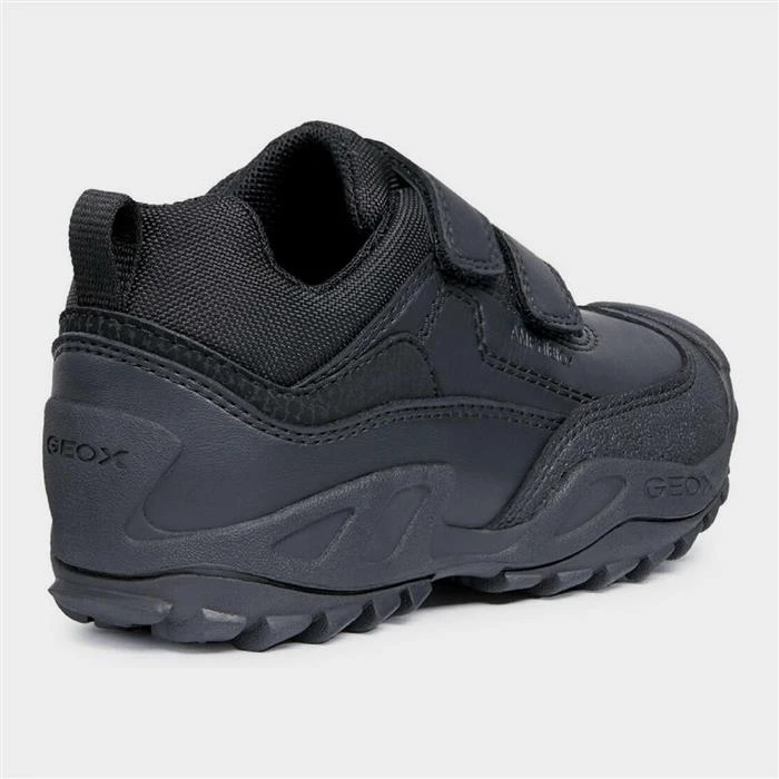 By Geox, these J New Savage boys shoes feature a black leather upper and a breathable membrane which helps regulate foot temperature to keep feet comfortable throughout the day. The gripped rubber outsole offers greater stability and durability, and the easy fasten straps ensure a quick fitting process. These shoes are ideal for school.