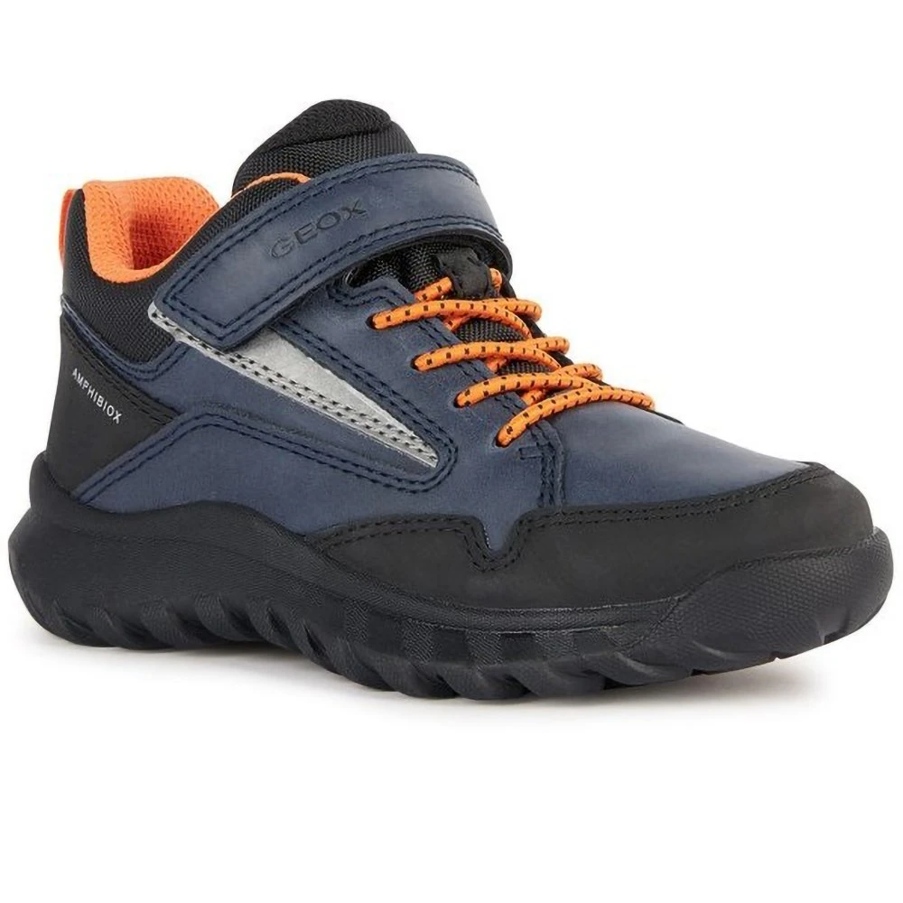 Simbyos B ABX is a hybrid-style shoe for boys which delivers maximum protection, even when the bad weather strikes. It has been crafted from a waxed-leather-effect material and nylon, and boasts a cushioning waterproof design.