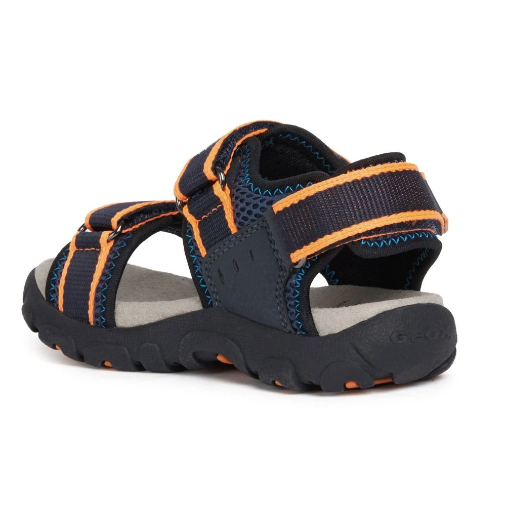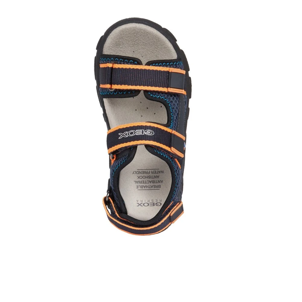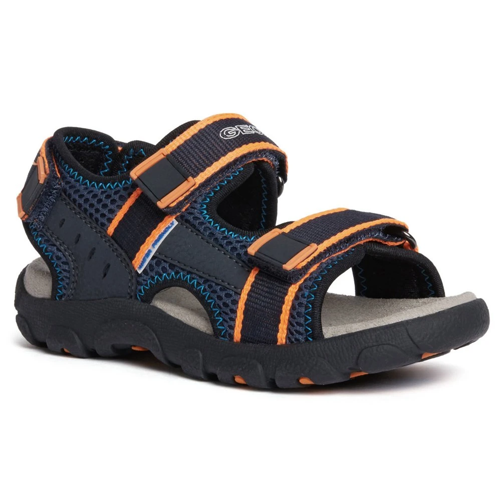 Stay cool throughout summer with the Geox Junior Strada boy’s sandals. Featuring a microporous membrane which eliminates sweat, feet stay fresh throughout wear while enjoying the finer things in life. Slip feet in and secure with three rip tape straps for your best fitting and enjoy soft textile linings for comfort throughout.