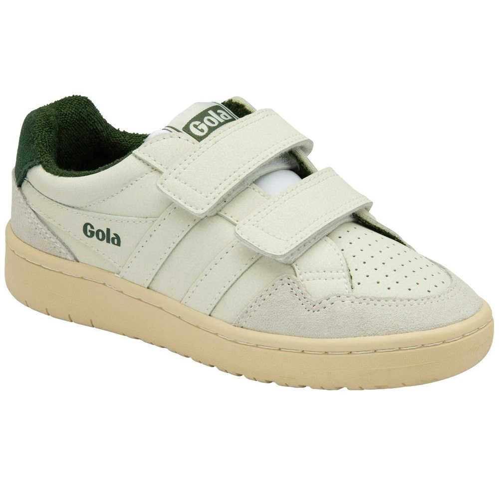 Eagle Strap for kids is an understated trainer with a funky vintage vibe. This classic off white and green colour combo is a takedown of the men’s and women’s version but features super convenient hook and loop fastening for kids on the go.Â