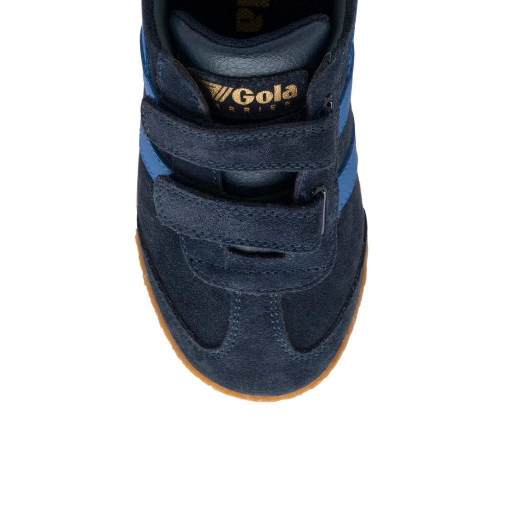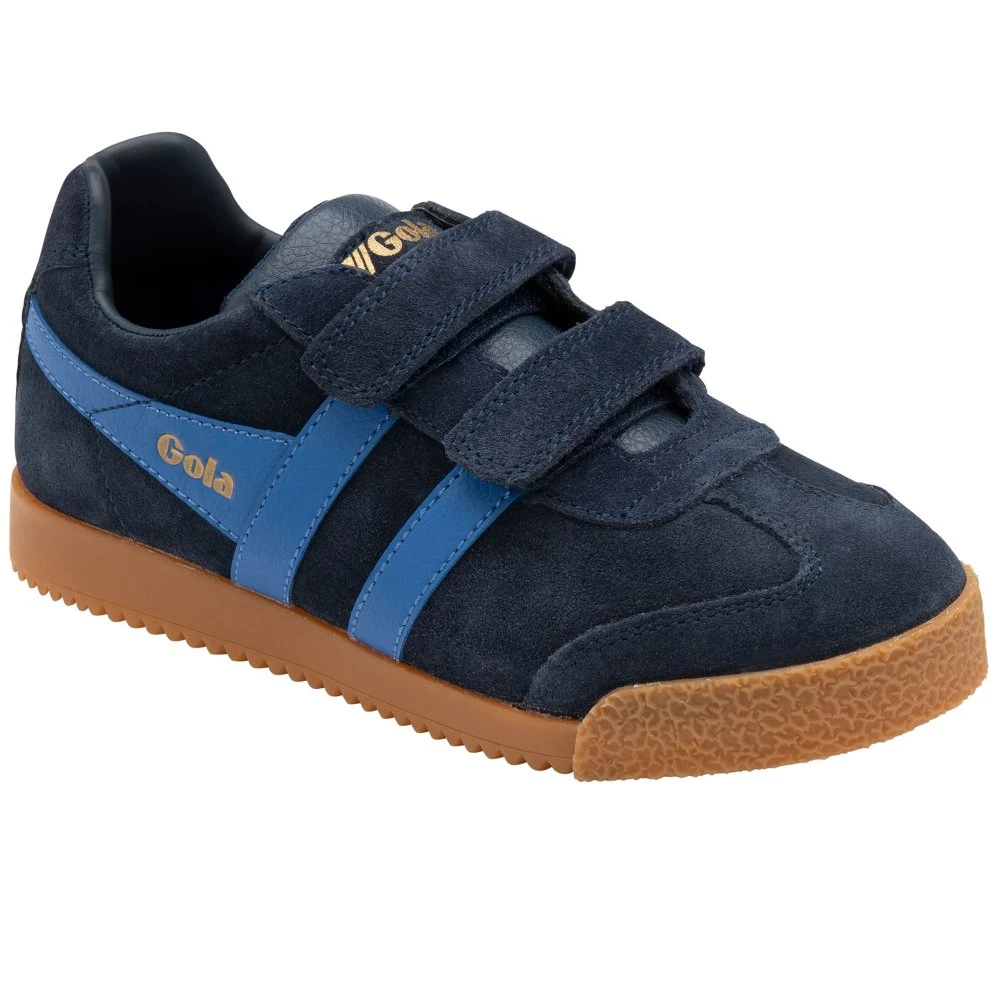 Gola Harrier Velcro for kids is a new addition to the Gola classics collection. This stylish kids’ option features a suede upper and a contrast colour wingflash. Other features include a gum sole unit, velcro fastening and the iconic Gola branding.