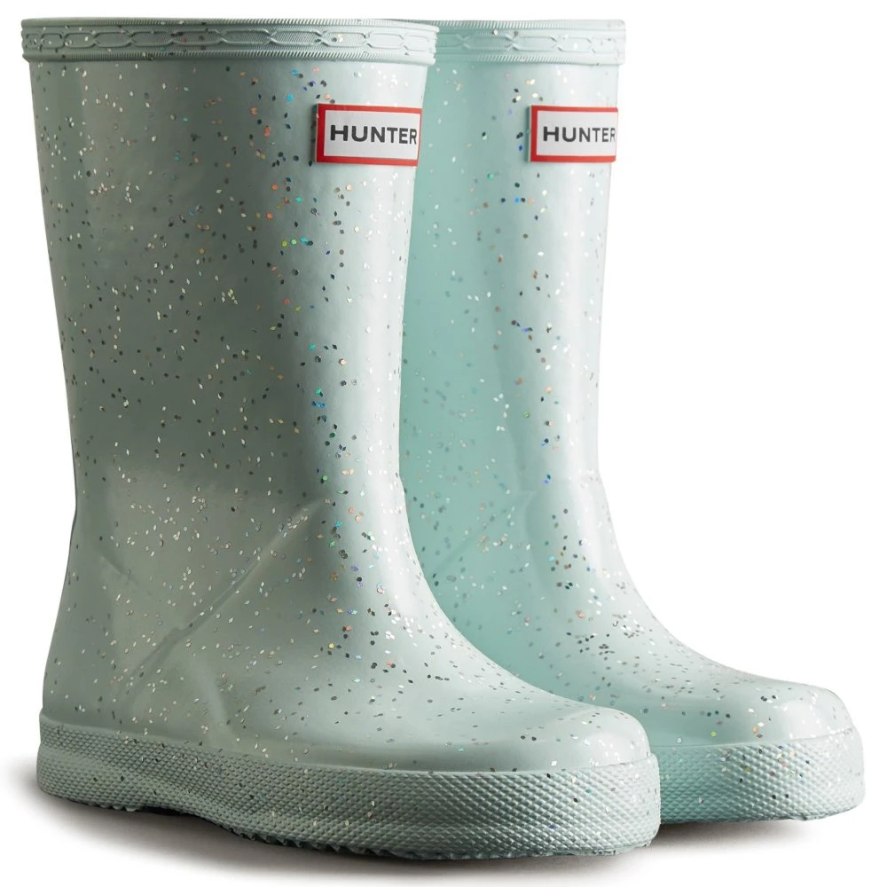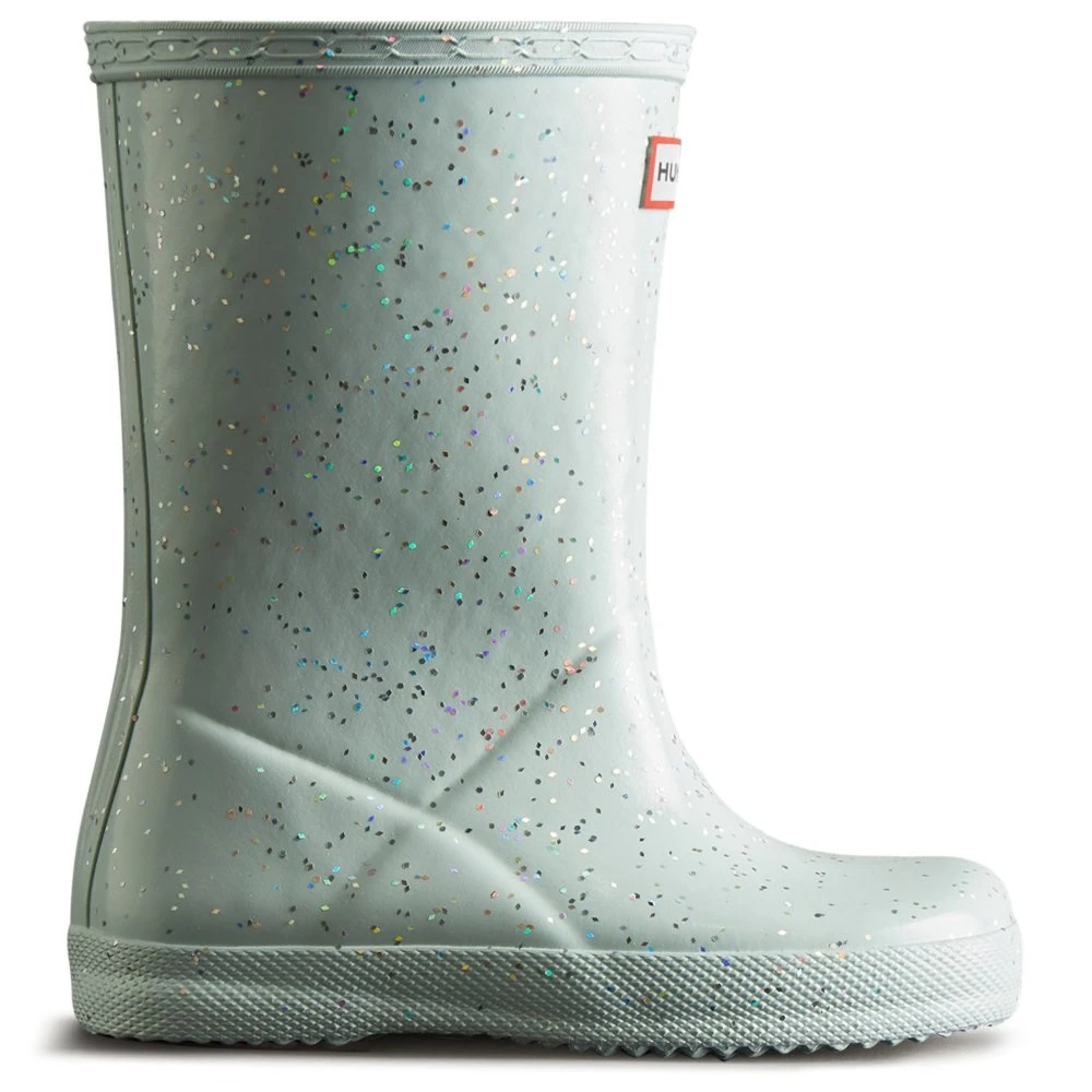 The Kids First Classic Giant Glitter Rain Boot is perfect for puddle splashing. Handcrafted from natural rubber with a unique chunky glitter finish, the flat sole and rounded toe give little feet room to move.