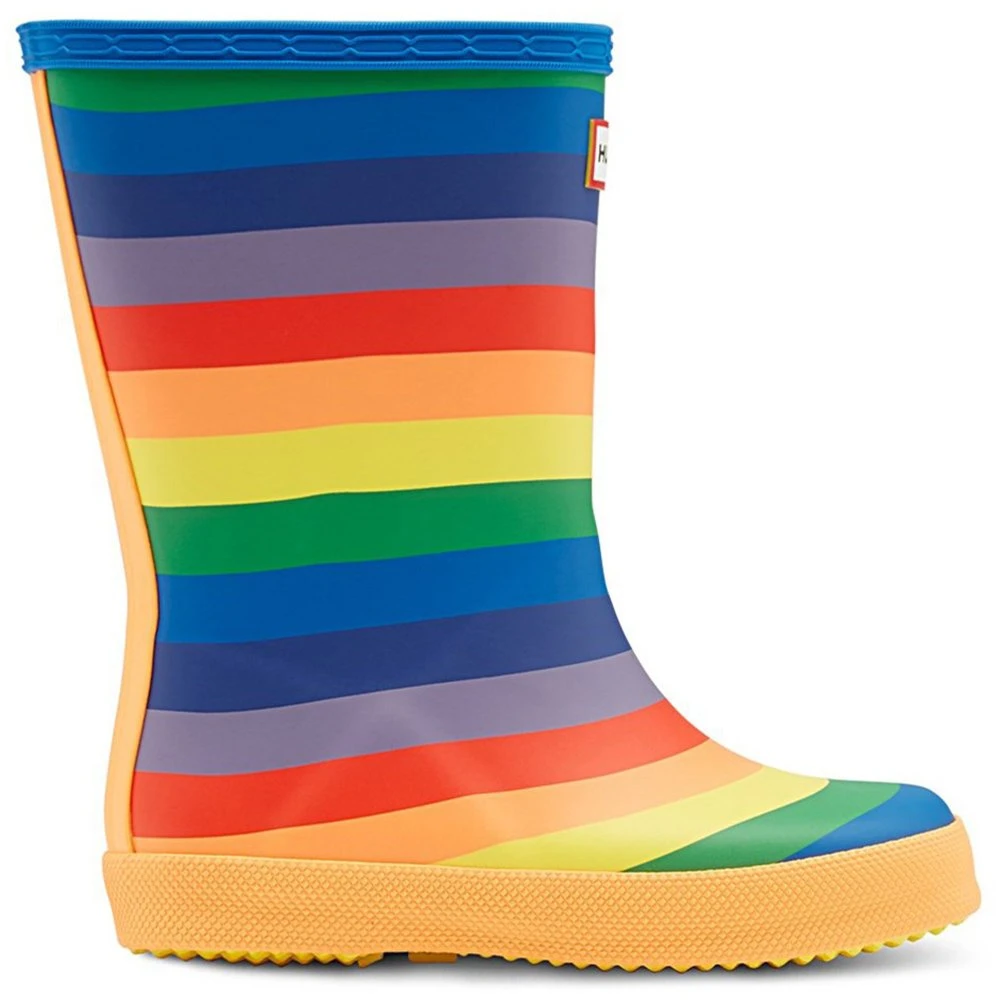 Featuring a vibrant and fun rainbow design, this kids boot is perfect for puddle splashing. Handcrafted from natural rubber, a flat sole and rounded toe gives little feet room to move and the soft recycled polyester lining ensures complete comfort.