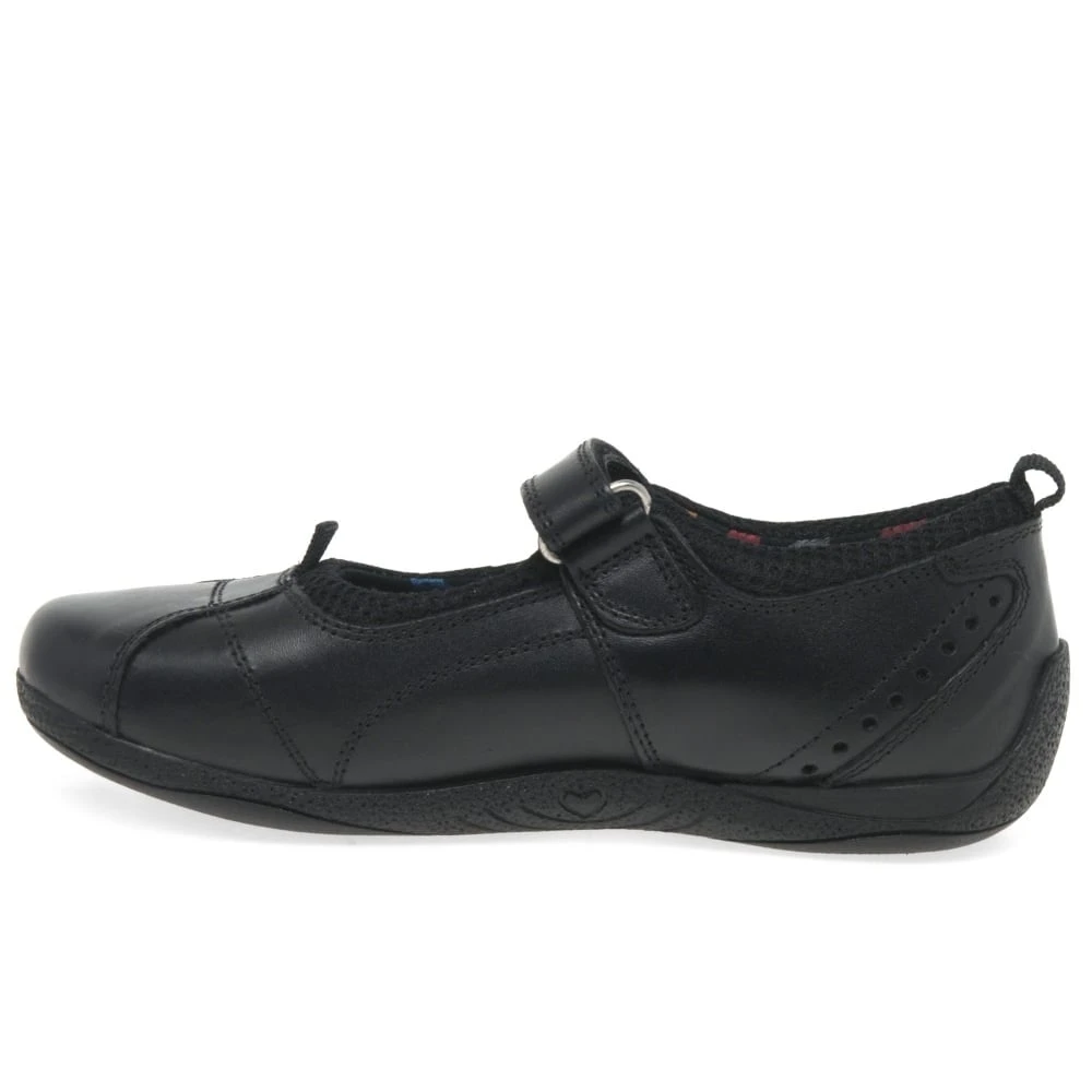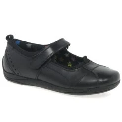 With loops on their heels and toes, the Cindy Senior girl’s school shoes by Hush Puppies are fitted to the feet easily, and fastened securely with the help of adjustable rip tape straps. A multi coloured star print lining adds a fun element to these classic Mary Jane style shoes.