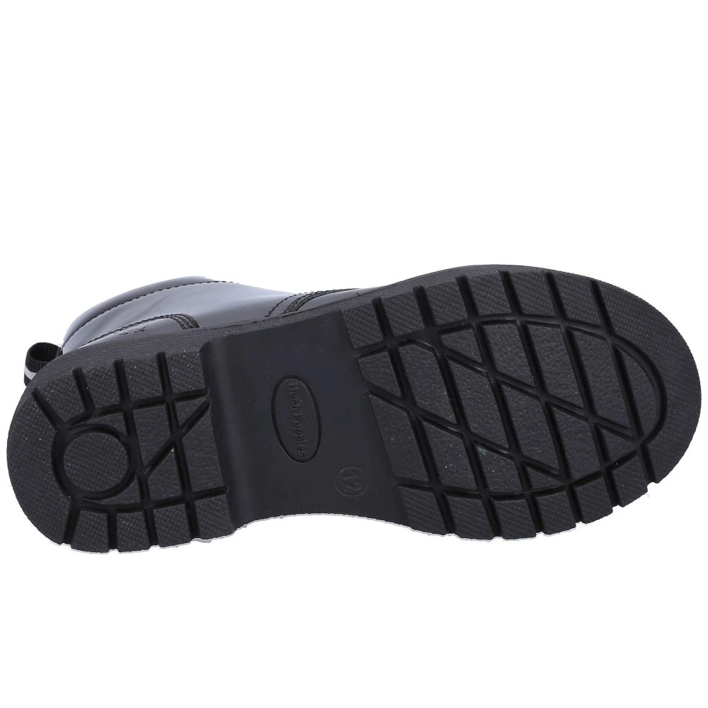 Stylish and Comfort; The Jolie patent boot is sure to be a winner with its trendy boot style upper and stacked effect sole. Its breathable textile lining and lace up fastening allow feet to feel secure throughout the school day