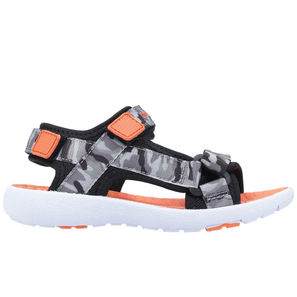 Kids Summer walking leisure shoe from Hush Puppies, Miles Quarter Strap Sandal is crafted with lightweight uppers, triple touch fastening straps for a secure fit. Flexible traction outsole.