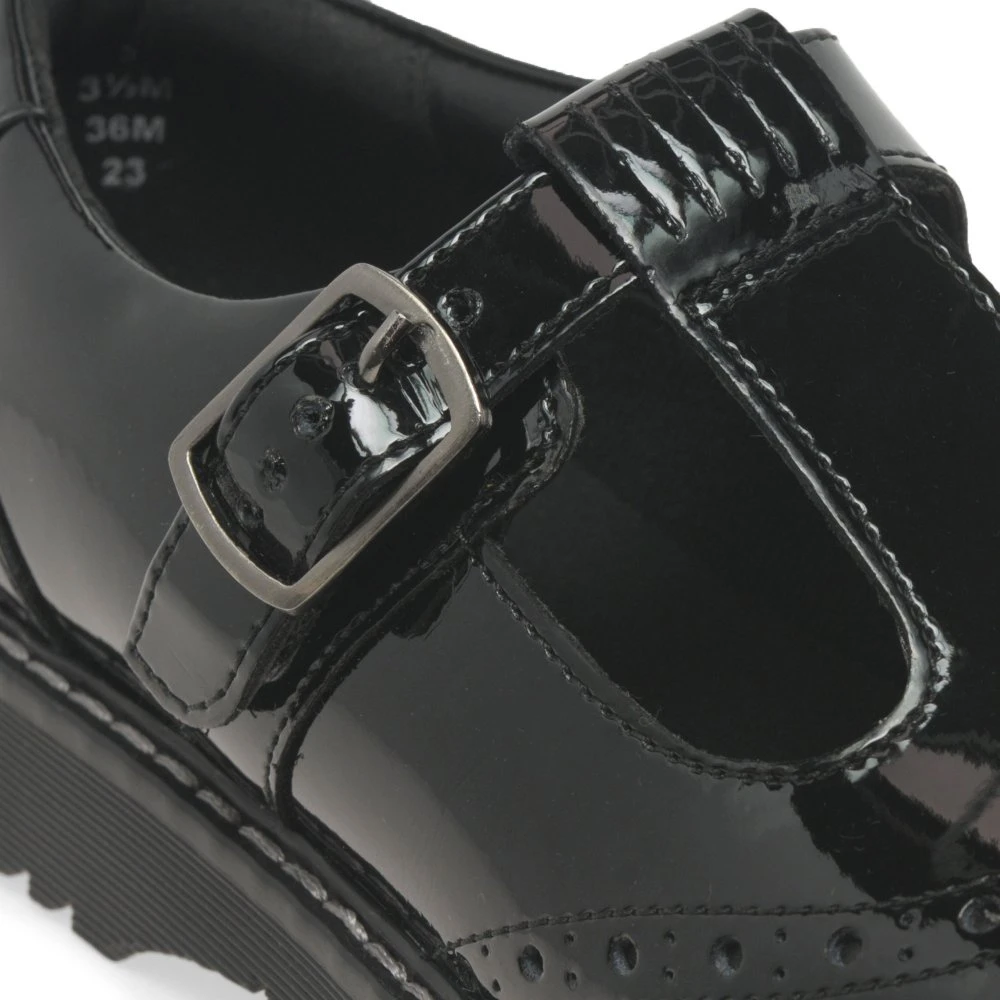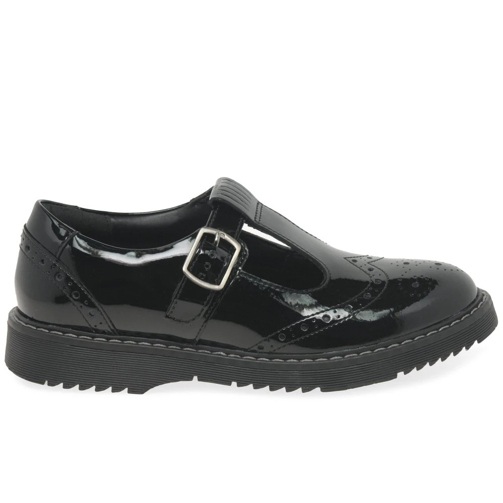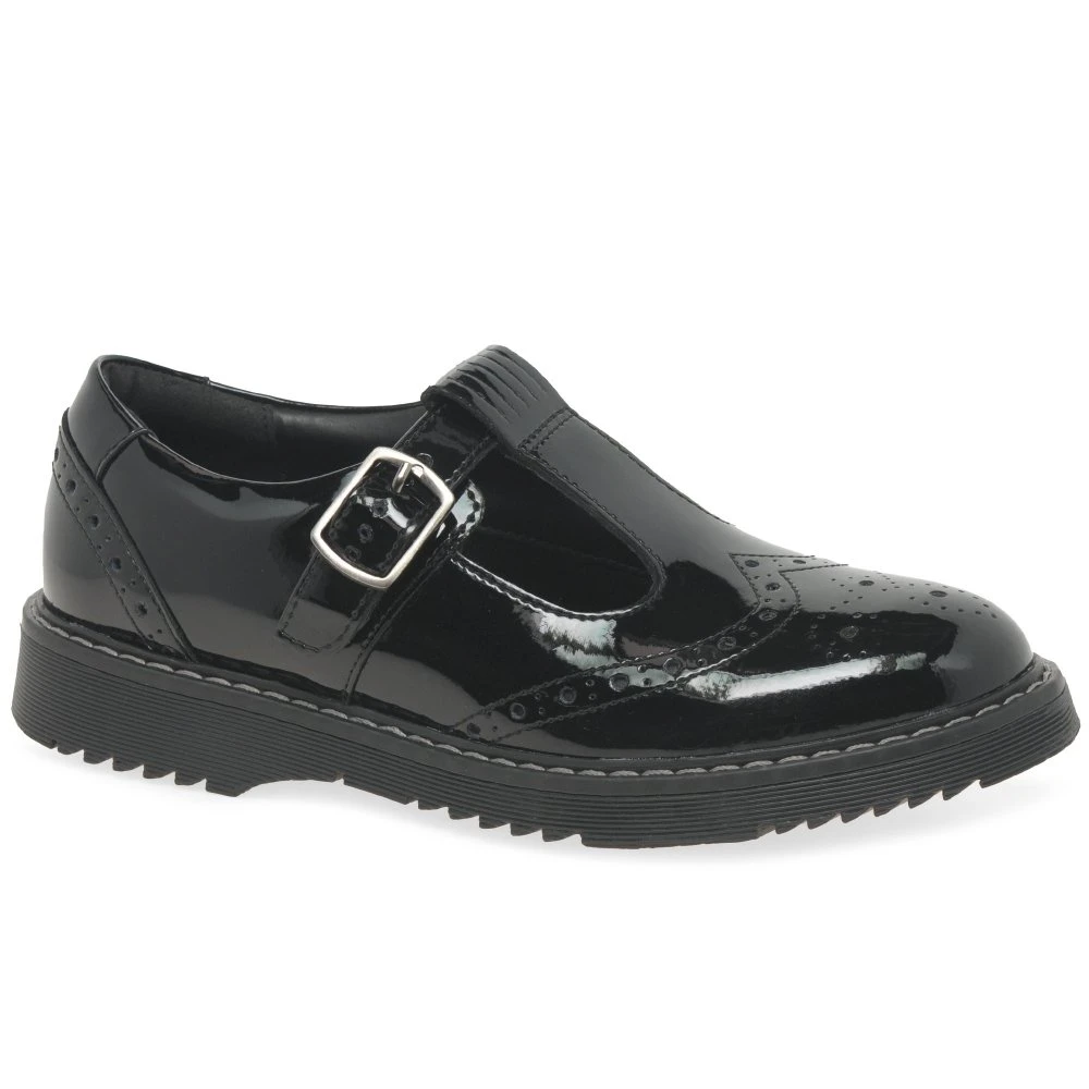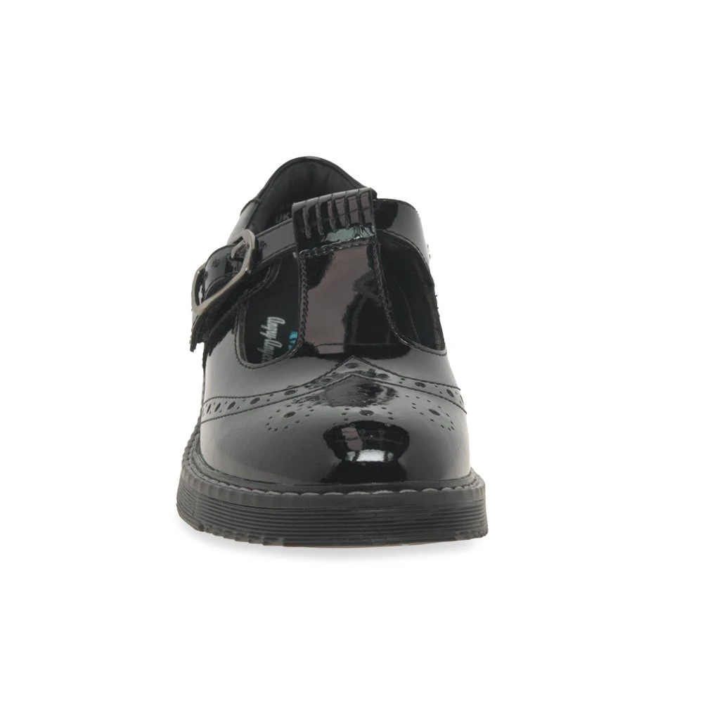 The Angry Angels Imagine Girls Senior School Shoes are stylish and functional. They feature a durable, glossy upper with a breathable cutout design for additional ventilation. The adjustable buckle and shock-absorbing sole also provide further personalisation and support.