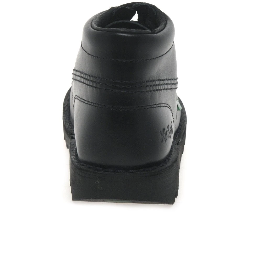 With embossed Kickers logos on the heels, the Kickers Chi senior girls hi-top shoes are finished with iconic red and green Kickers tabs.