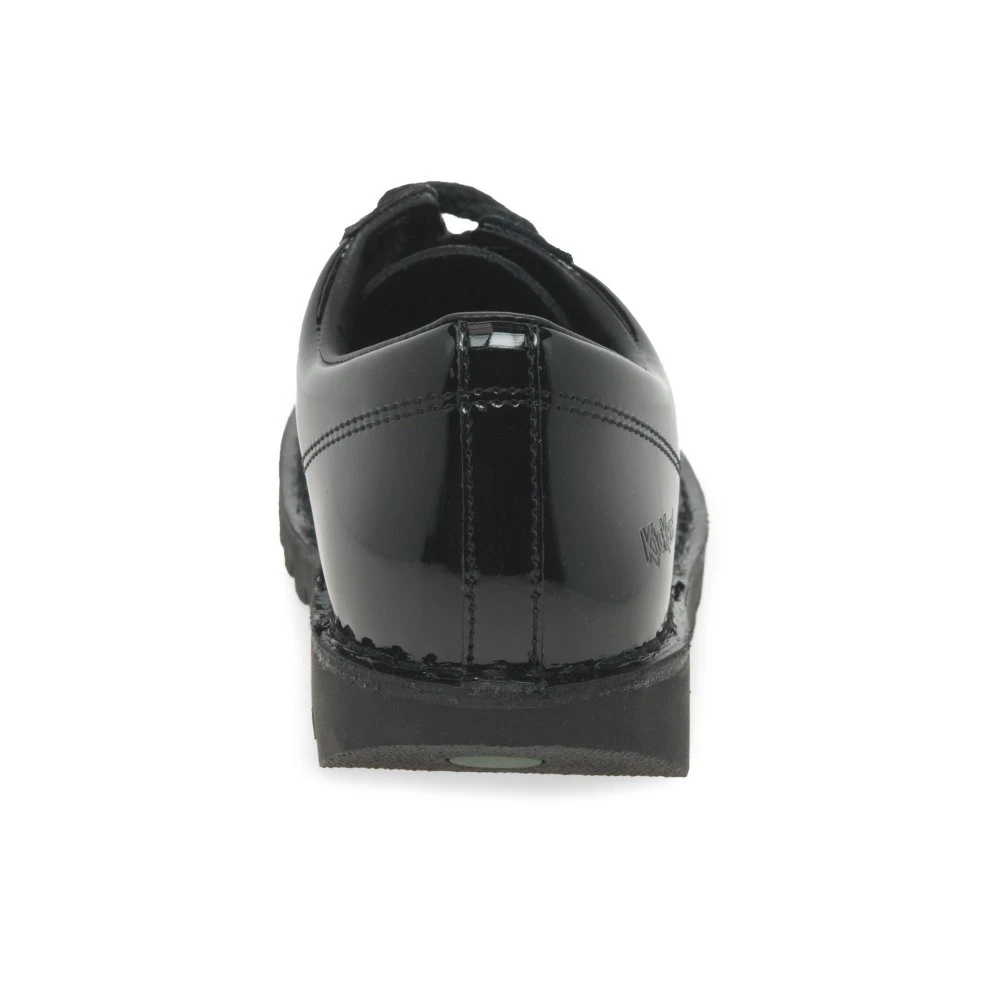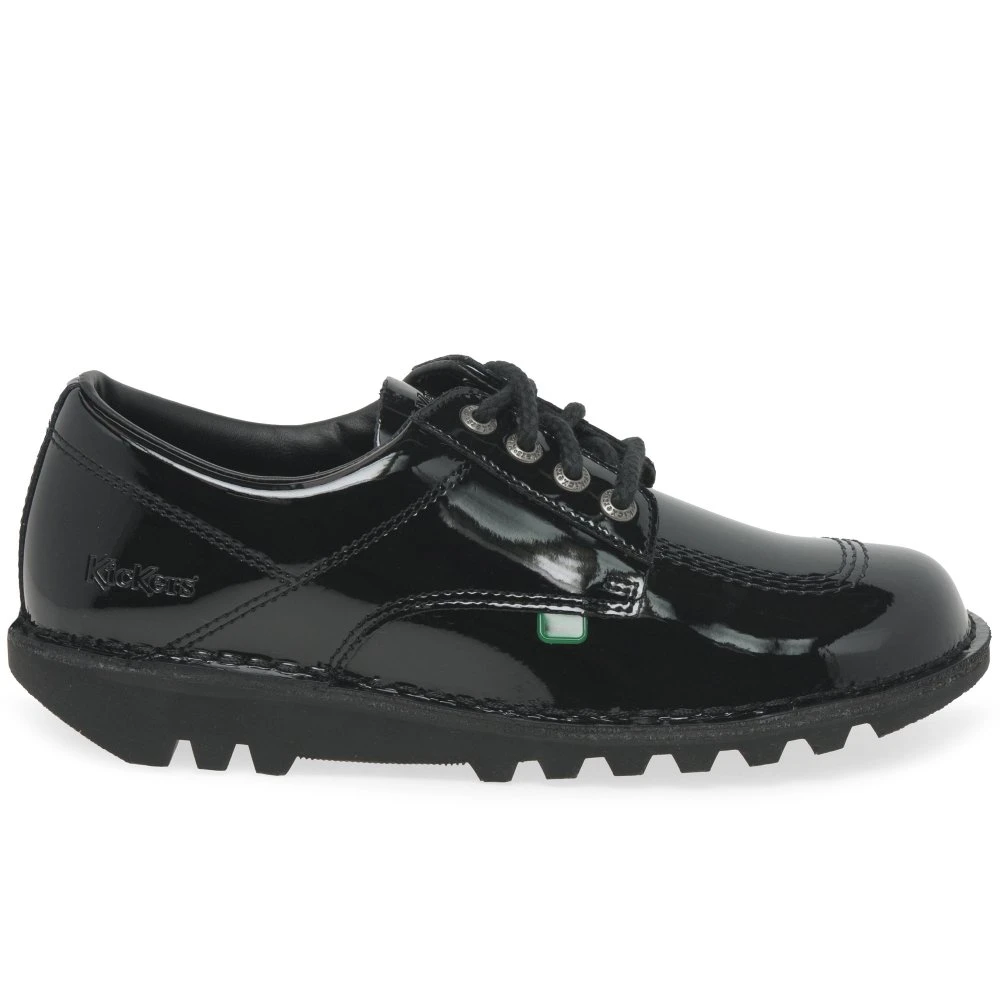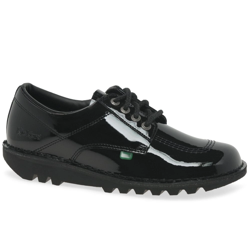 A sleek and versatile design, the Kickers Lo WMNS school shoes feature patent uppers on durable rubber soles. Cleated soles ensure underfoot grip, whilst lace fastenings provide a secure fitting.