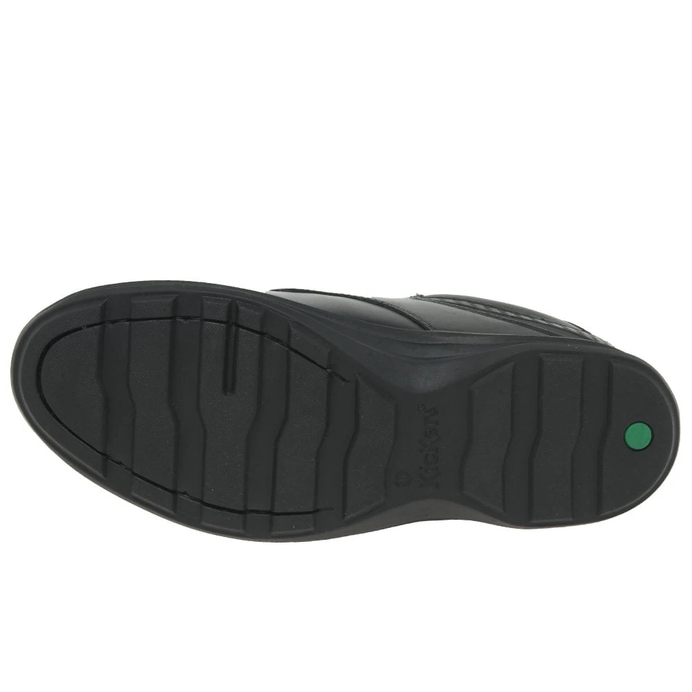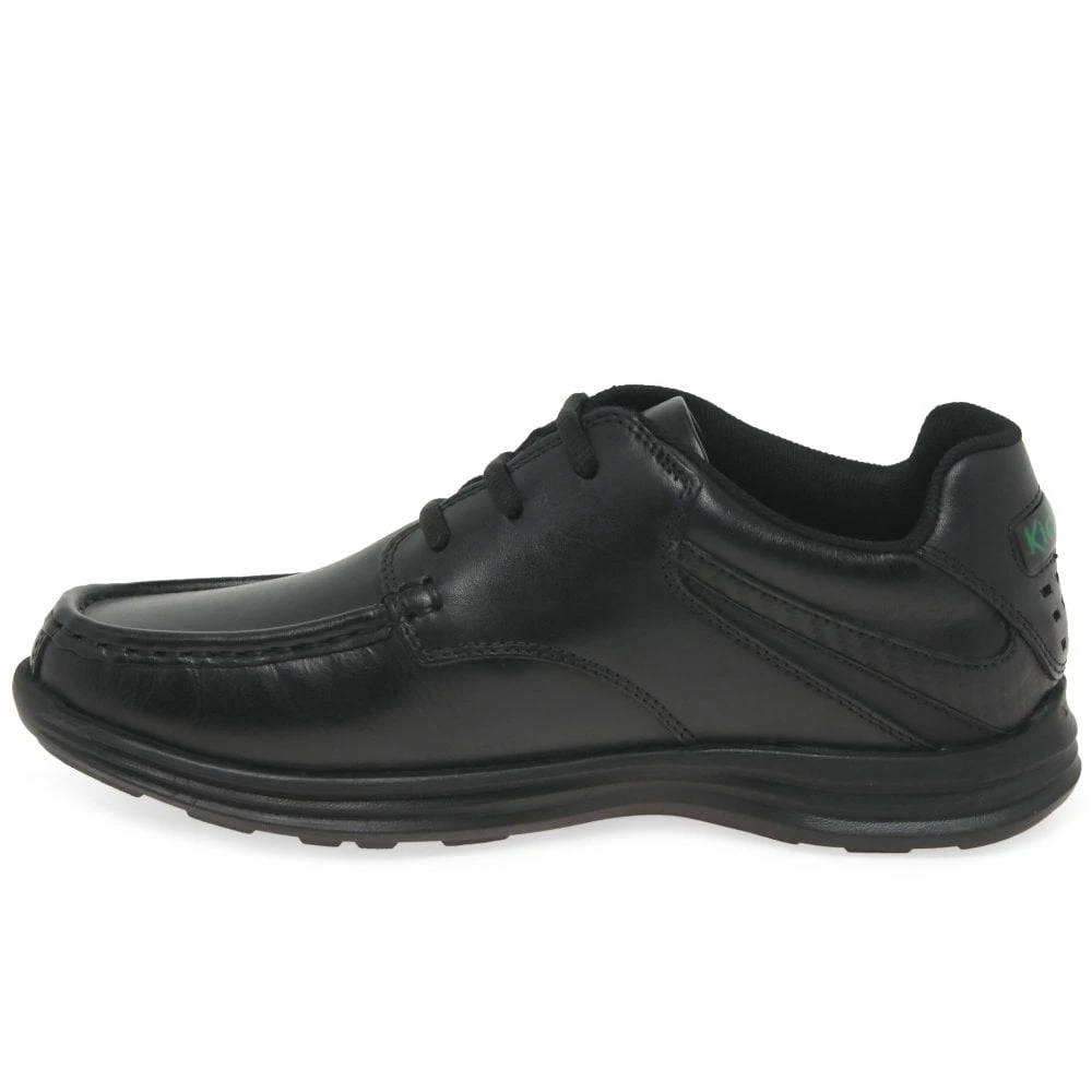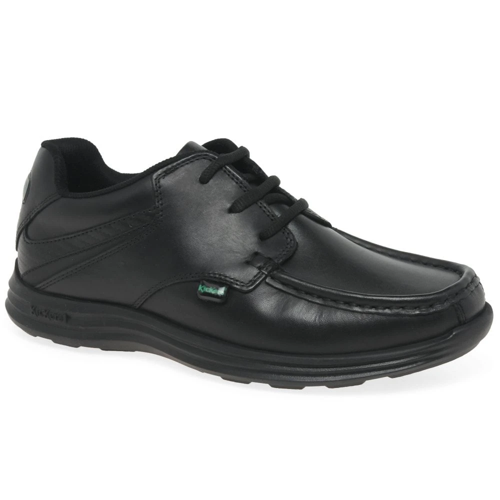 The Kickers Reasan Lace junior boys school shoes are a smart black leather lace fastening pair, with moccasin style detailing and a streamlined silhouette. Lightweight, smart and sporty, they are ideal for everyday wear.Â