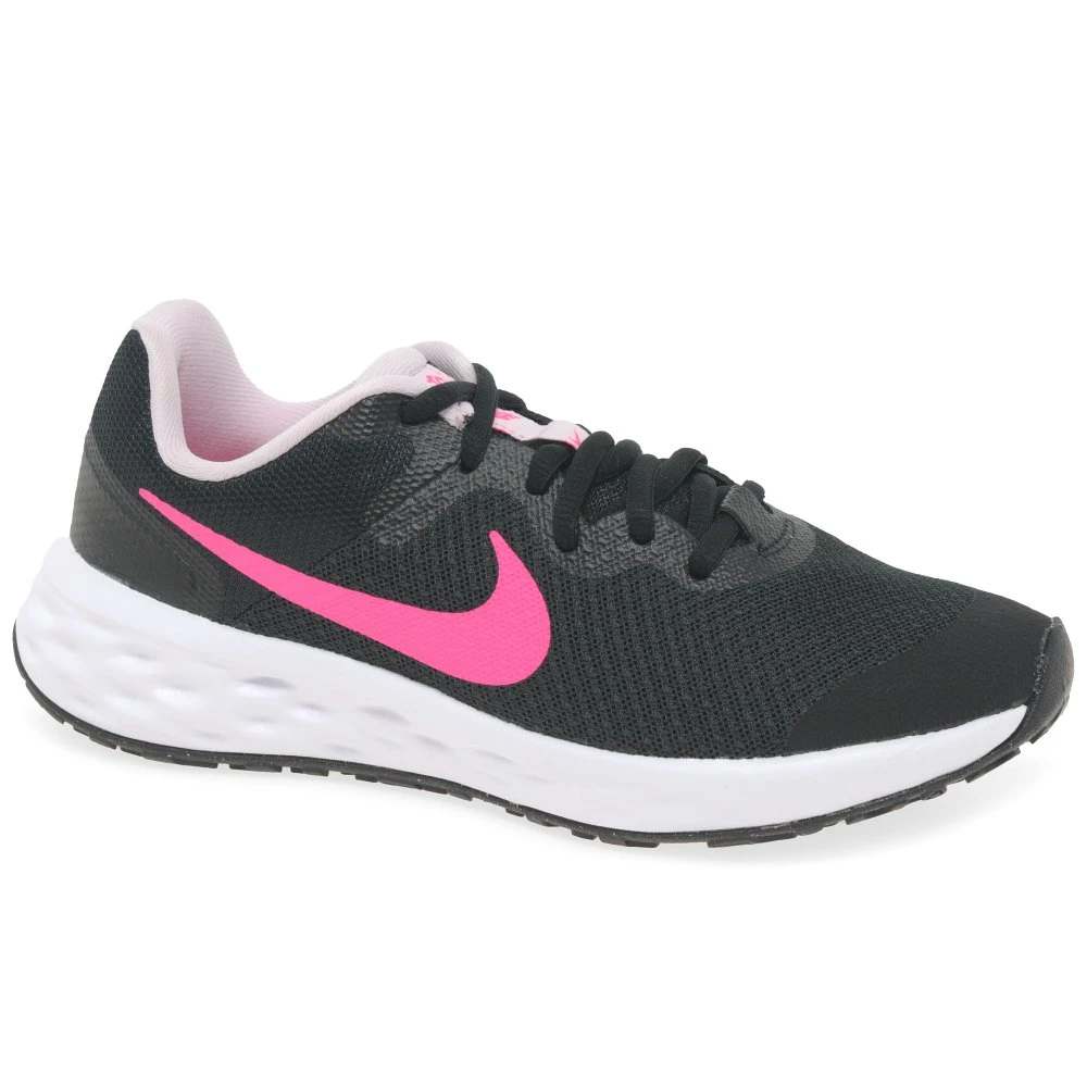 The Nike Revolution 6 Senior Girls Sports trainers feature a lightweight upper which is breathable and keeps feet cool all day long. Secure with the lace fastenings for an easy on/off fit.Â