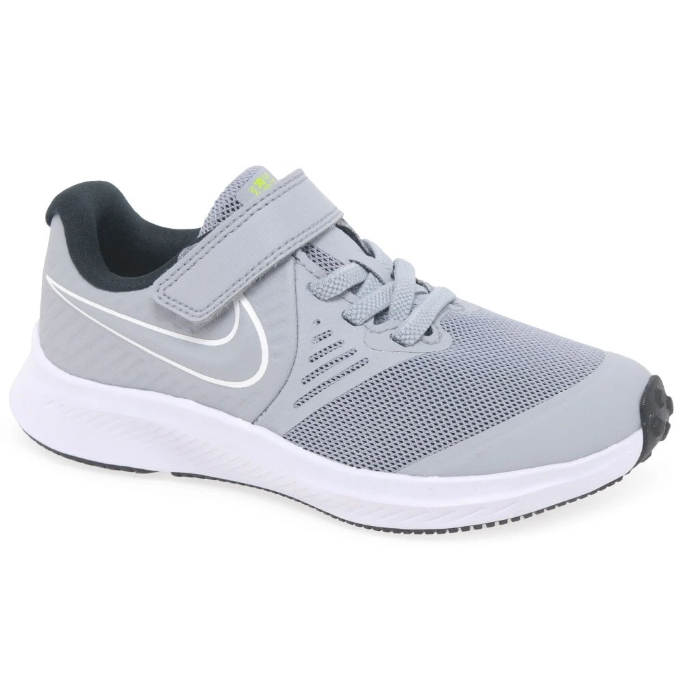 Run all day long in the flexible and lightweight Nike Star Runner 2, perfect for sporting activities or everyday wear your children won’t want to take them off. A combination of leather and synthetic uppers allows your child’s feet to breathe and feel fresh at the end of the day. The added padded collar around the trainer will keep feet and ankles comfortable and supported throughout wear. Speed laces and a rip-tape fastening will secure feet as they can easily slip into the Nike trainer with the soft cushioned linings.