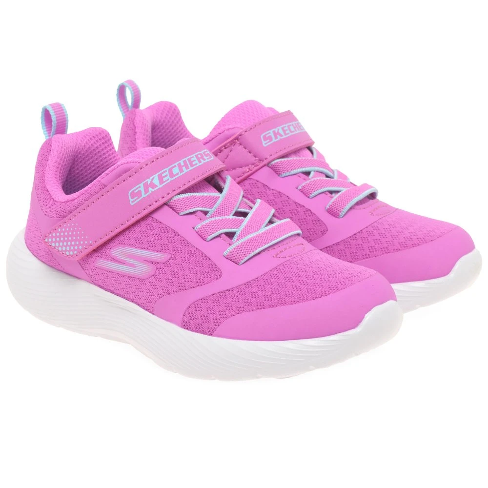Help them find their footing in lightweight support with the Skechers Dyna-Lite girls infant trainers. Featuring breathable mesh uppers with stretch laces and a well-cushioned insole, this easy-to-wear machine washable style is as practical as it is comfortable.