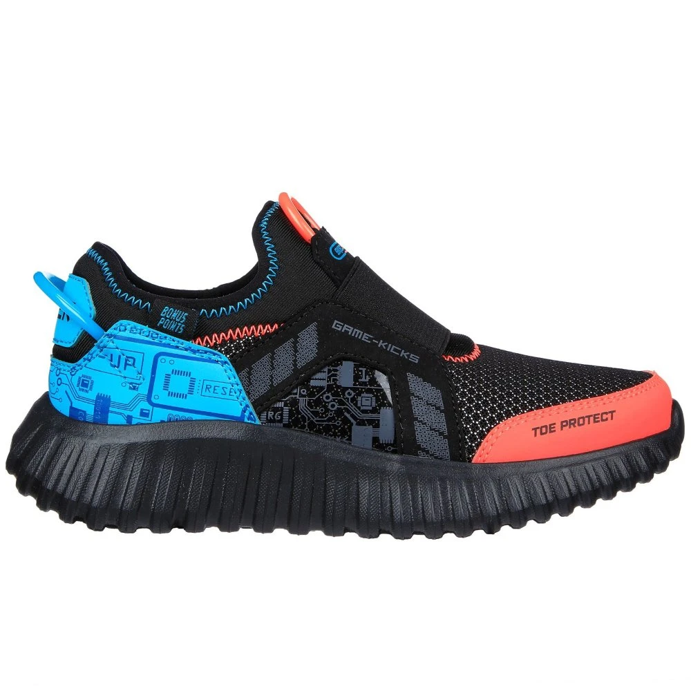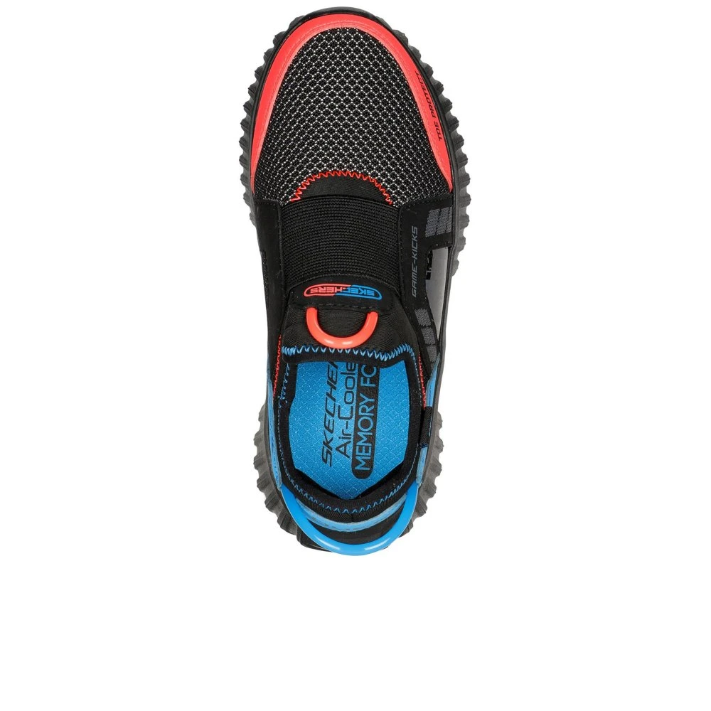 Step up the fun in awesome comfort with Skechers Game Kicks: Depth Charge 2.0. This lightweight slip-on features a mesh and synthetic upper with a playful game themed design and a cushioned Skechers Air-Cooled Memory Foam insole.