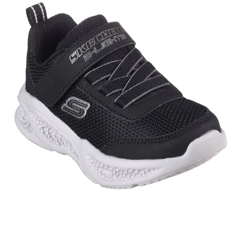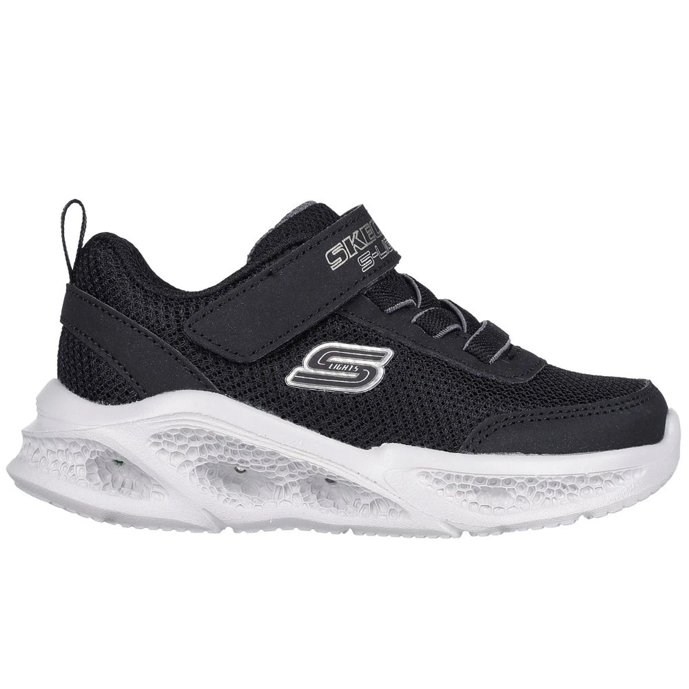 Illuminate your steps in sporty style and comfort with Skechers S-Lights: Meteor-Lights. This stretch-laced design has a mesh and synthetic upper, plus a fun light-up midsole.
