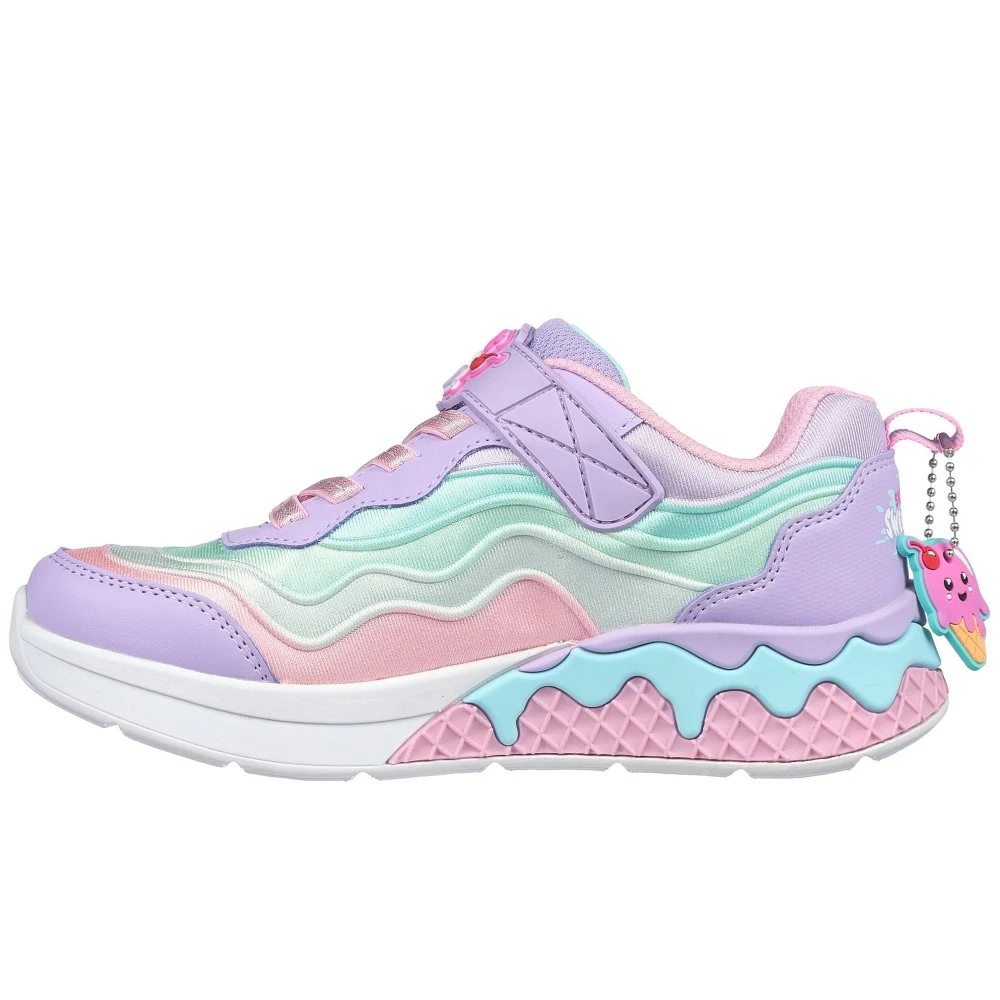 Step out in sweet, fun-loving style wearing Skechers Sundae Sweeties. This ice cream themed Sweet Kickz scented design features a multicolored gore mesh upper with satin stretch laces, an adjustable instep strap, and a cushioned comfort insole.