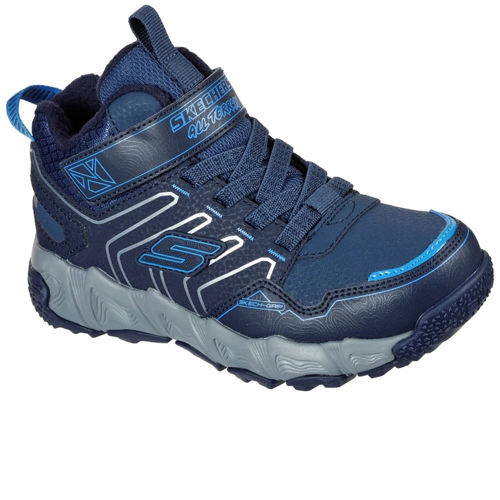 Adventure in all-terrain comfort with the Skechers Velocitrek shoe. This mid-top trail trainer features a waterproof leather, synthetic and mesh upper with a stretch-laced front and durable rubber outsole.