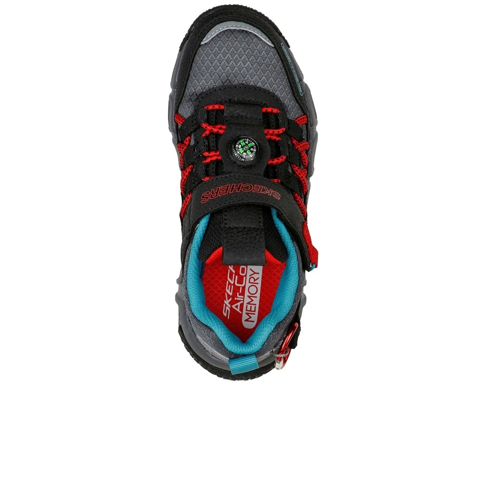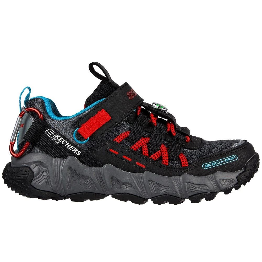 Adventure in all-terrain comfort with Skechers Velocitrek – Pro Scout. This hiking trail sneaker features a water-repellent synthetic and mesh upper with an attached compass, carabiner, stretch laces and an instep strap.
