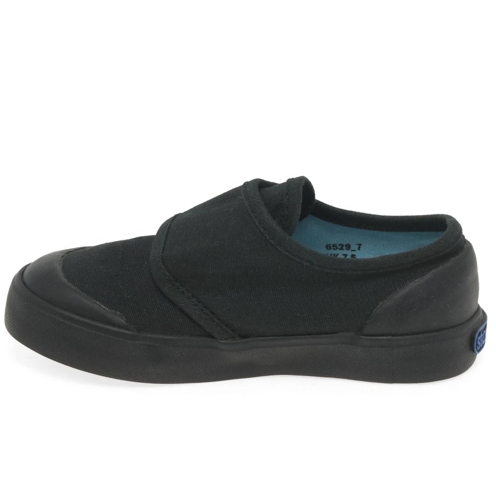 Suitable for boys and girls, with a simple, black canvas upper and riptape fasten. This makes for no fuss, ease and comfort. The padded insole provides a cushioning for any impact, ideal for energetic kids! The flexible rubber sole makes these Startrite Skip shoes durable.