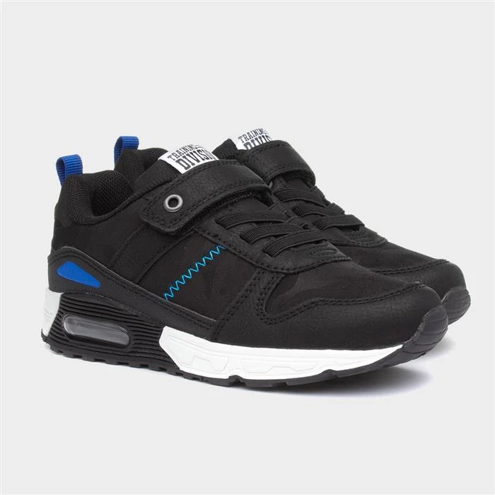 These Tapiwa kids’ trainers from Sprox feature a black upper, with blue stitch and black camo design detailing. For a quick and easy on and off, there’s bungee laces to help the shoe stretch and pull tab too. They also feature an easy fasten for a secure fit. The bubbled sole provides comfort and they’re gripped for stability.