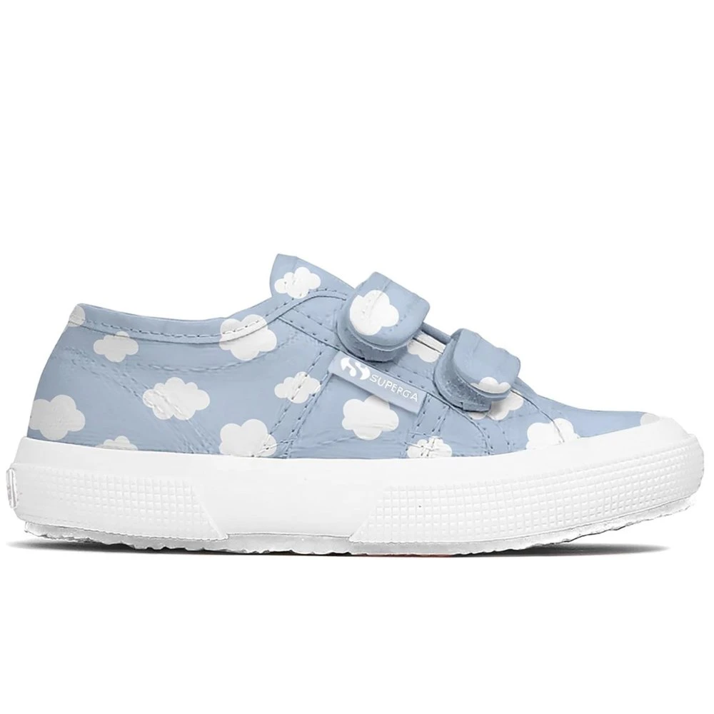 Superga 2750 for kids: upper in clouds printed cotton with straps for closure, lining in cotton and outsole in vulcanized natural rubber.